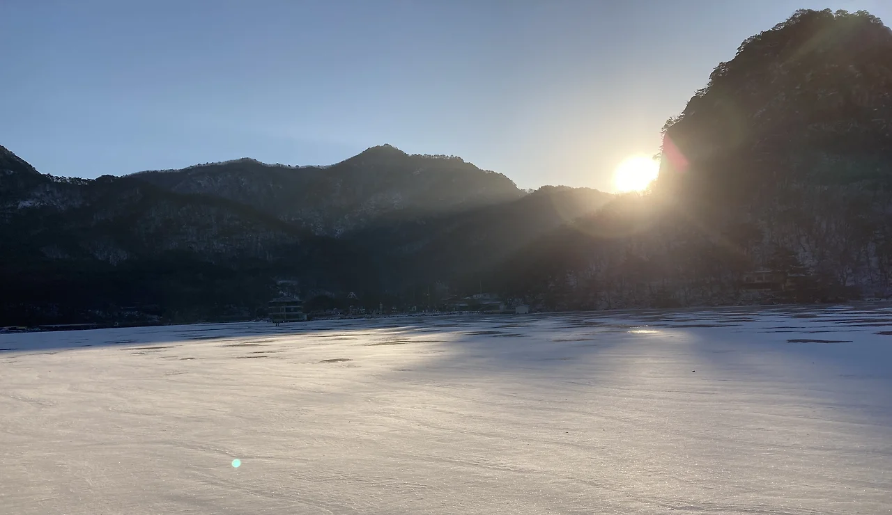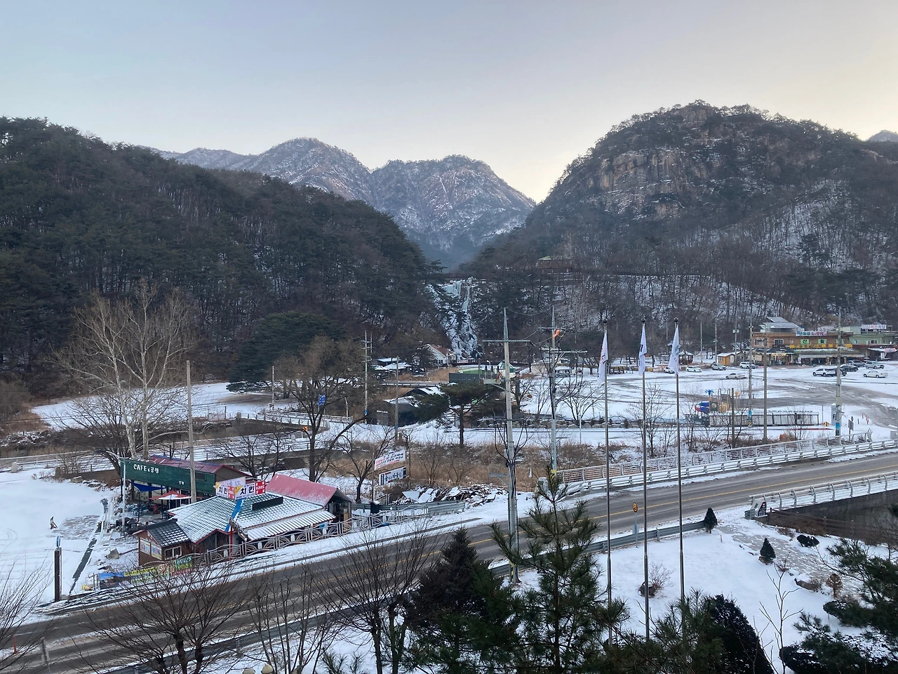 평일이라 그런지 가는 길은 막히지 않았다. 중간에 잠깐 눈이 더 왔지만 흩뿌리는 정도였다. 오히려 곧 구름이 개어 화창한 하늘이 되었다. 두 시간이 지나 드디어 산정호수 한화콘도에 도착했다.