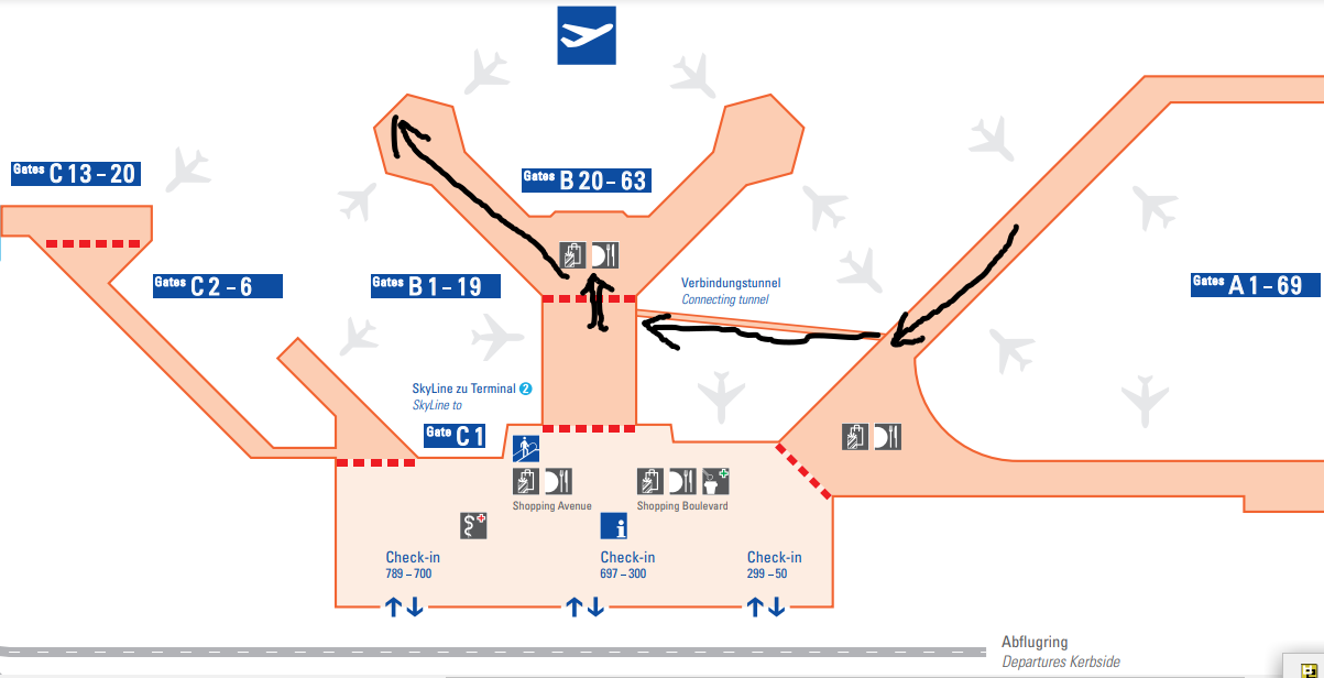 드디어 비행기가 프랑크푸르트 공항에 착륙했다. 지상에서 게이트까지 이동하는 10분이 10년처럼 느껴졌다. 게이트에 도착한 시간이 18:20. 아시아나 출발 10분 전. 비행기 밖으로 나오자마자 우리 셋은 “Excuse me”를 연발하며 사람들 사이로 뛰기 시작했다. 엘리베이터를 기다릴 여유가 없어서 비상계단으로 뛰어 내려갔다. 무빙워크에 서 있을 여유가 없어서 지하터널 300m를 가뿐히 뛰었다. 출국심사장까지 3층도 당연히 비상계단으로 뛰어 올라갔다. 출국심사장에 도착한 시간이 아시아나 출발 3분 전. 아직 희망은 있었다.