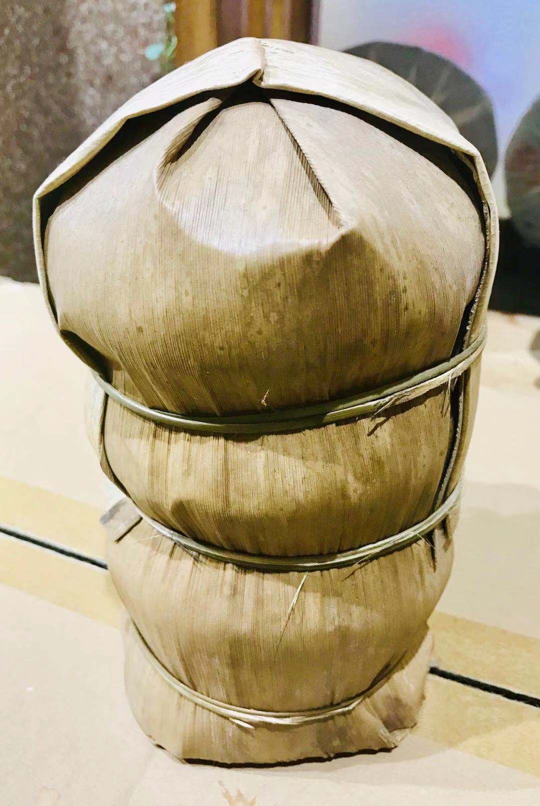 차 선생님 : 그게 흑차가 나오게 된 계기가 되거든요. 이렇게 차를 포장하는 것은 알겠죠? '병'모양으로 포장해서 7개씩 담은 것을 우리는 1통이라고 합니다. 이건 대나무 잎으로 둘둘 싸서 꼭 묶어서 통을 만들고 통 6개를 포장해 1건으로 만드는 거죠. 이게 요새도 전해져 내려오고 있습니다.