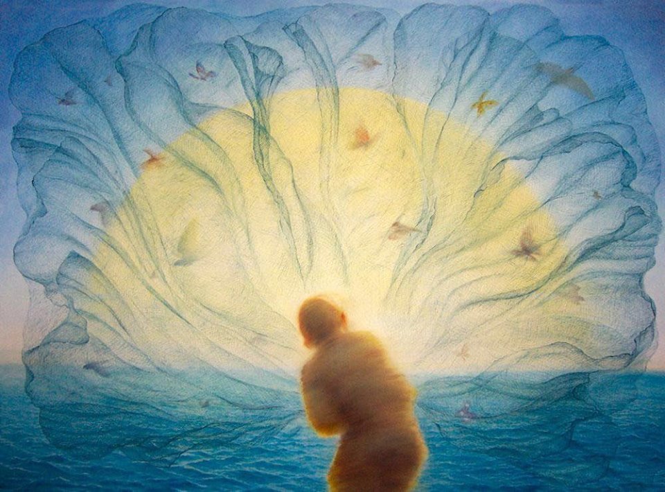 사진 같은 작품에 한줄기 빛이 들이쳐 있는 그 멋이란... 가만히 보고 있으면 깊은 생각에 잠기게 한다.