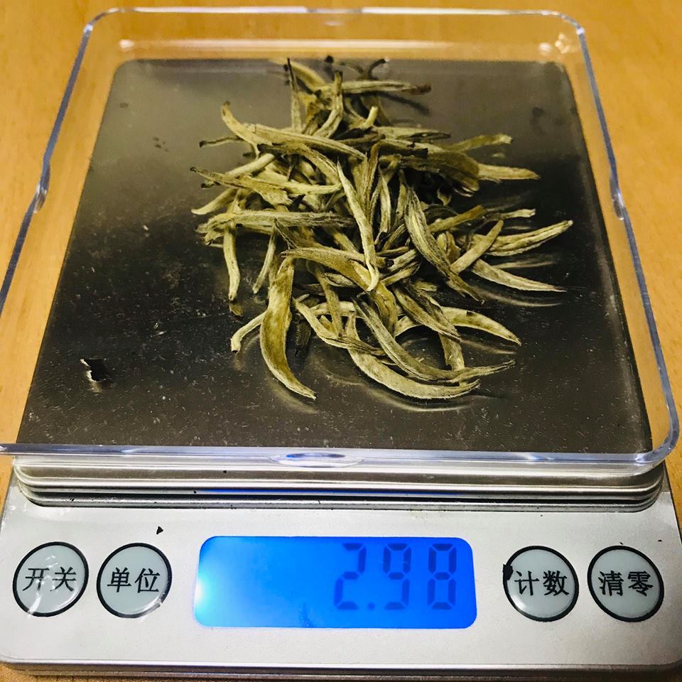 대부분의 사람은 저울을 가지고 있지 않기 때문에 눈대중으로 설명하면, 보통 사진에 나온 정도의 찻잎 무게(3g)에 표준 사이즈 개완 용량인 150ml의 물을 넣으면 된다.