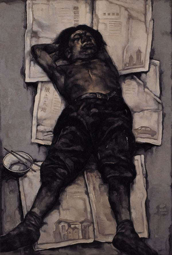 그가 석사를 하던 시기가 바로 현재 중국 현대미술을 주름잡는 팡리쥔(方力钧) 같은 작가들보다 한 세대 정도 앞선 때로 팡리쥔이 그의 영향을 받았다고 말하는 사람도 있다. 항렬로 따지면 팡리쥔의 사형 정도가 될 것이다.