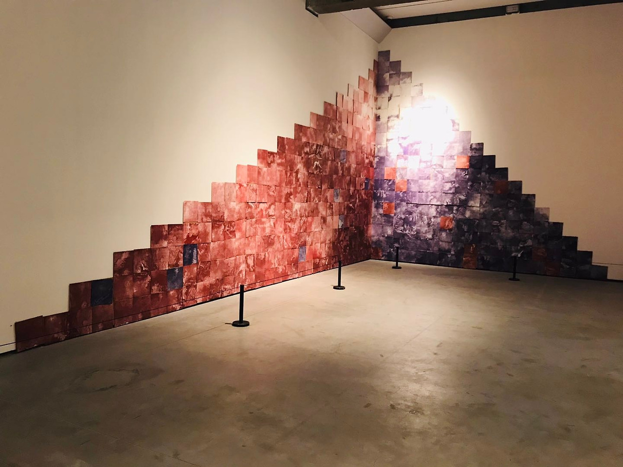 오늘 전시된 판화 작품들은 2018년에 주로 작업한 것들로 동판을 이용해 모자이크 형식으로 산수화 같은 큰 그림을 퍼즐 맞추듯 구성하는 작품들이었다.