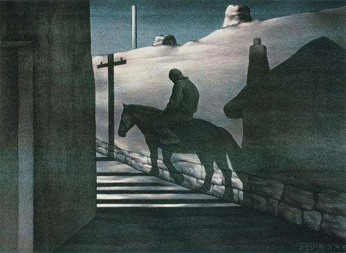 그의 판화 작품은 사선으로 내리치는 빛과 길게 늘어진 그림자를 표현한 작품이 많은 데 이게 굉장히 쓸쓸하면서도 차분한 느낌을 주면서 매력적이다.