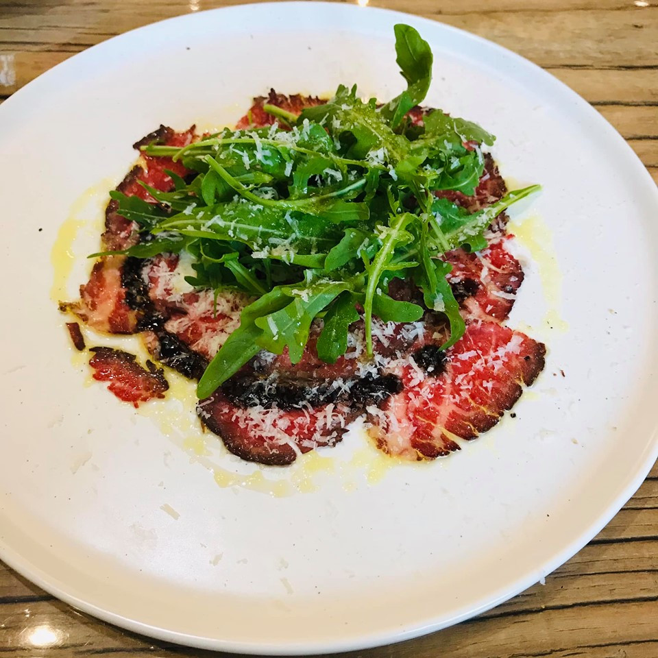 오늘 전채 요리는 소고기 탈리아타(tagliata), 우리말로 얇게 썬 소고기에 루꼴라를 얹은 샐러드가 나왔다.