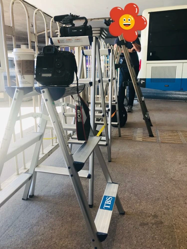 사진을 보면 알겠지만, 다들 왜 사다리를 세워 둔다. 이걸 왜 가져오냐면 하도 취재를 심하게 하니 중국 공항에서 철판으로 VIP 통로 앞에 가림막을 쳐버렸다.