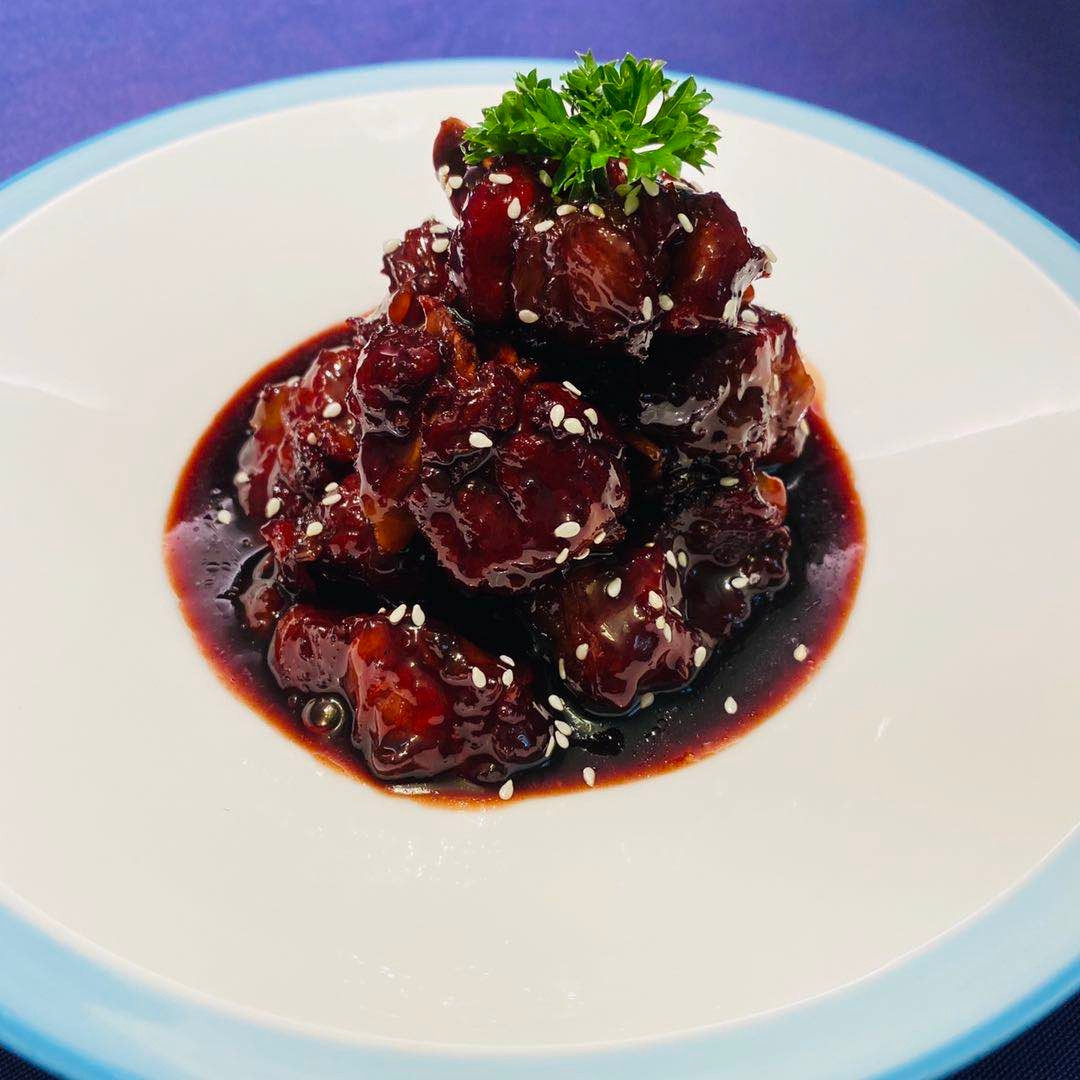 잠시 뒤 홍샤오러우, 탕추샤오파이(탕추쪽갈비), 게 내장 두부, 말린 병어 훈제, 민물새우튀김, 성젠바오, 찹쌀 꿀대추가 테이블에 올랐다.
