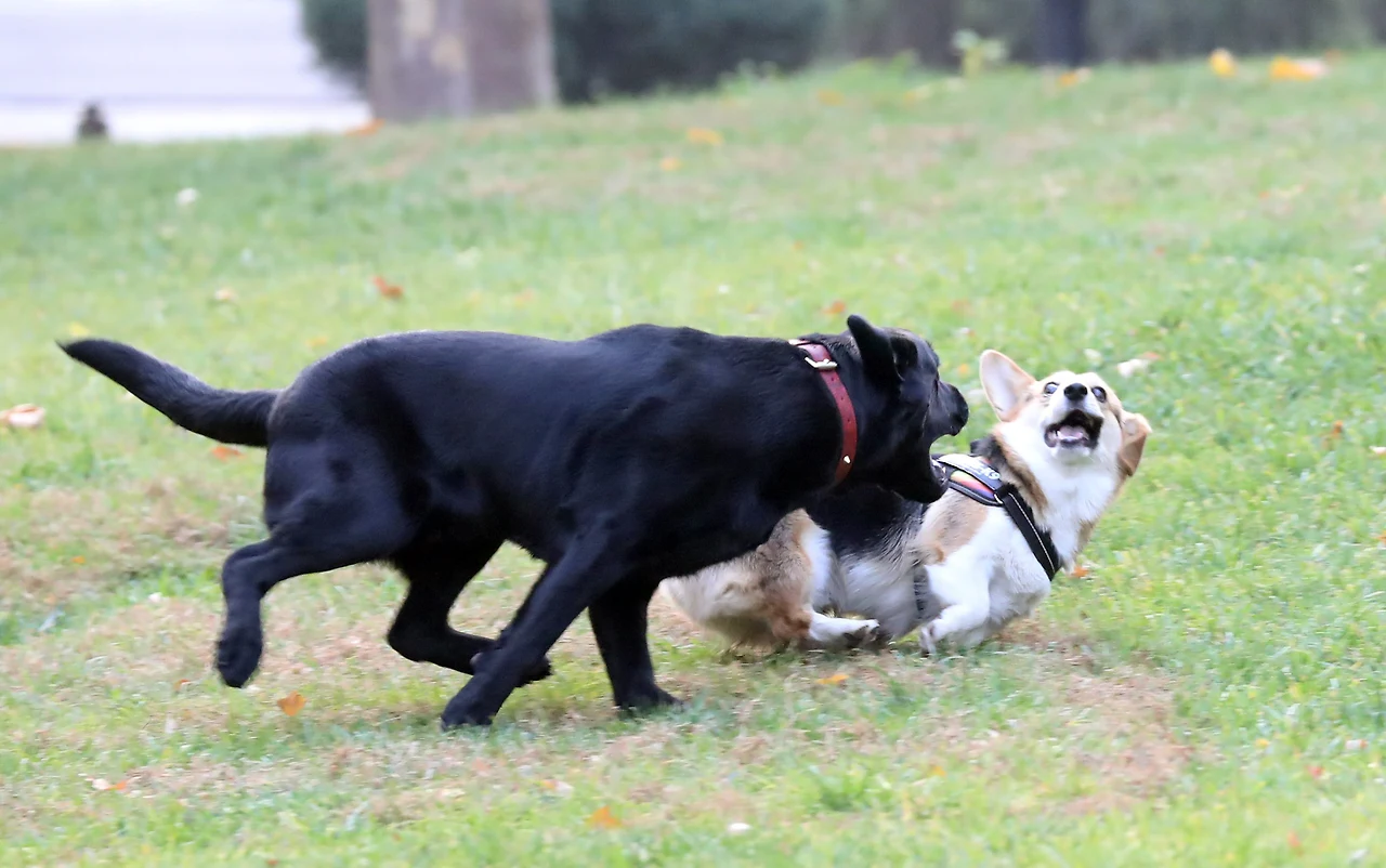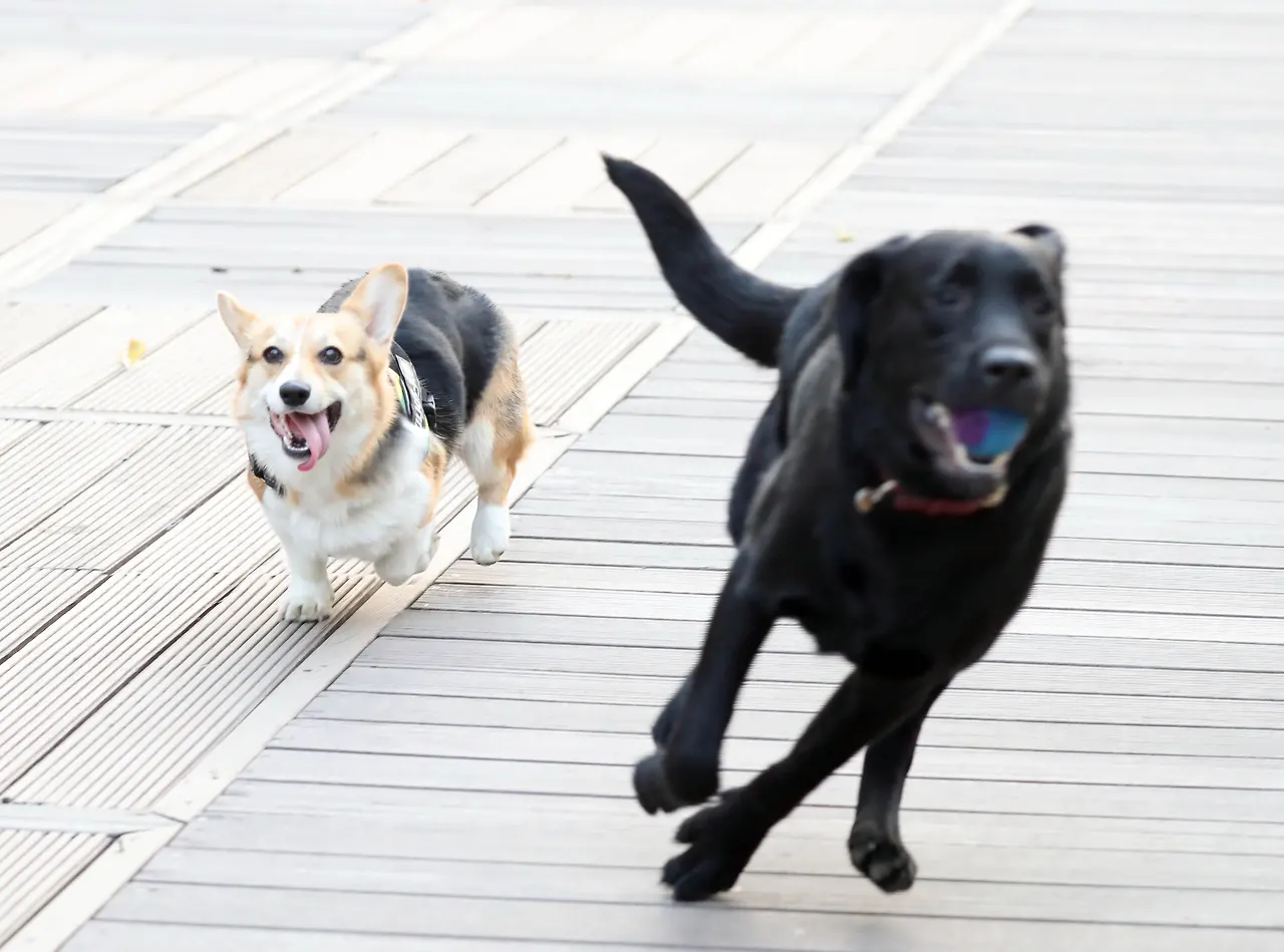 어. 저기 베이얼이 온다. 쟤는 내 단짝 친구 베이얼이야. 나랑 갑인데. 웰시코기라 겸댕겸댕해서 동네 사람들 귀염을 독차지하고 있어. 성격도 좋아서 나랑 만날 잘 놀아주거든. 베이얼은 사실 내 물셔틀이야. 이쯤 오면 목이 엄청 마른데 베이얼 쥔님이 물 줄 때 그냥 가서 마시면 돼.