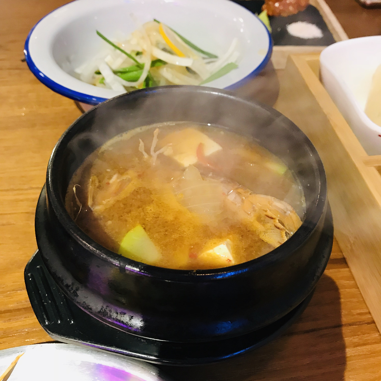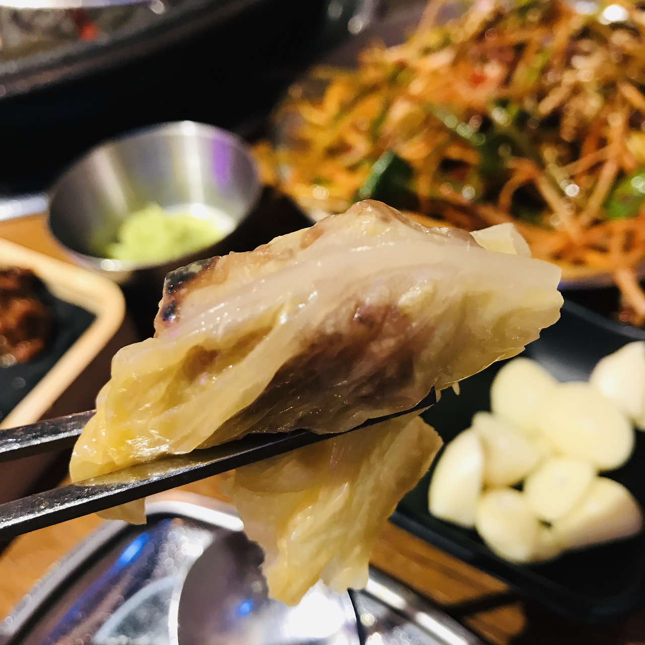 그다음은 돼지 껍데기 이 집은 돼지껍데기가 정말 예술이다. 용산에서 살 때 돼지껍데기집에 자주 갔는데 이 집 돼지껍데기는 그냥 차원이 다르다. 제주 애육당 한국 체인을 가본 적이 없어 모르겠지만, 나는 이곳에서 처음으로 이렇게 두꺼운 돼지껍데기를 봤다. 껍질의 두께가 민물장어 정도로 두껍고, 살코기까지 머금고 있어서 식감도 좋다.
