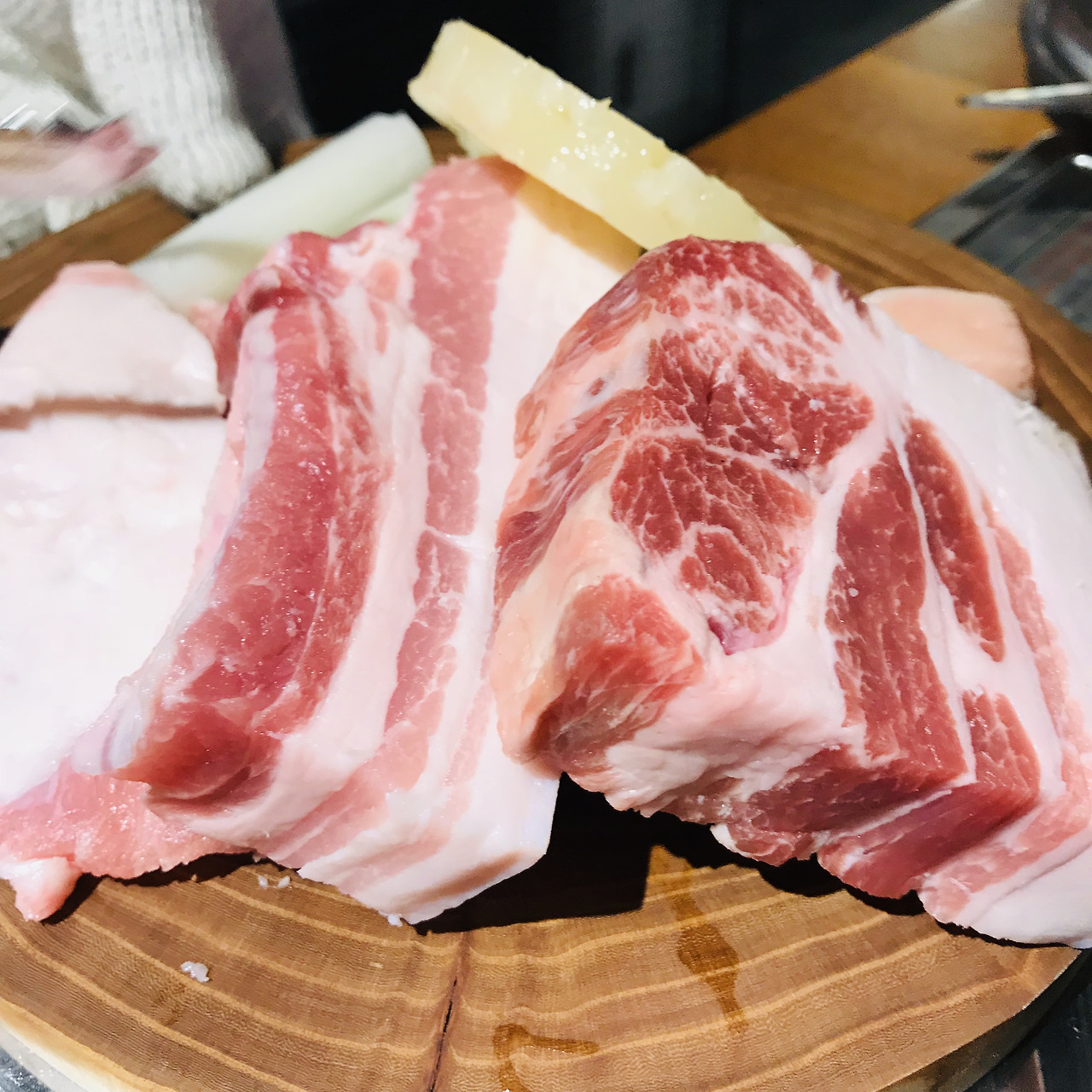 일단 오늘의 메뉴를 소개하자면, 빠질 수 없는 이 집 시그니처 메뉴인 삼겹살과 돼지껍데기 그리고 두툼두툼 목살, 마지막으로 돼지고기씬의 현란한 재간둥이 항정살 되시겠다.