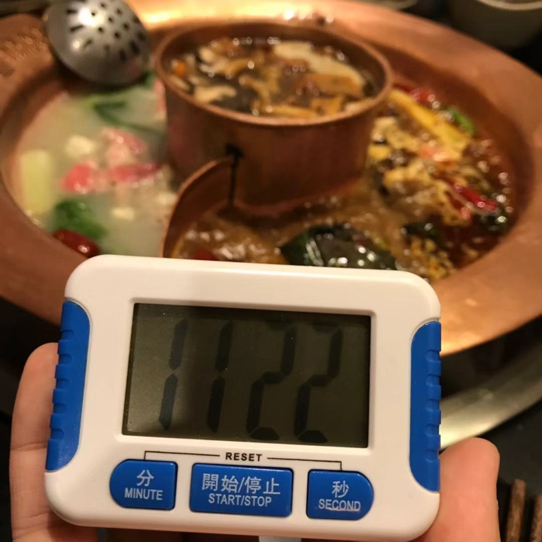 이제 본격적으로 먹어보겠다. 이 집 훠궈의 특징은 솥이 매우 특이하다는 것이다. 가운데 동그란 칸이 따로 구분져 있는데 여기가 바로 보양과 직결되는 중요한 자리다. 이곳은 야생버섯을 다른 육수와 섞이지 않게 끓이기 위한 공간이다. 종업원은 처음에 훠궈 재료를 서빙하면서 주문한 버섯을 이곳에 넣은 다음 타이머를 주고 간다. 냉동된 버섯의 육수가 우러난 뒤 먹을 수 있도록 '15분'을 맞춰 놓고 가는 것이다. 여기서 나오는 육수는 진짜 보약과 같다. 먹으면 감기가 뚝 떨어지는데 여러 번 임상을 거쳐서 검증이 됐다. 국물은 따로 퍼주는데 정말 진하고 향긋하다. 버섯을 잘 못 드시는 분도 데려와서 대접해 봤는데 너무 진하고 고깃국 맛이 난다며 엄청 좋아했다.