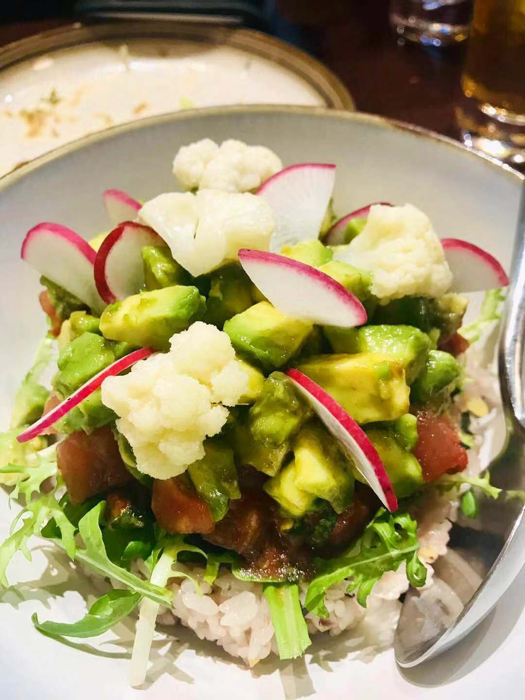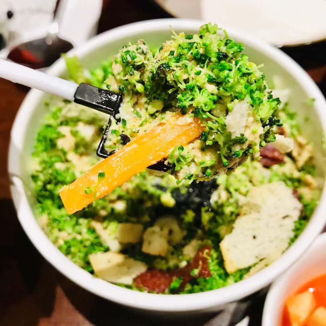 먼저 이 집의 시그니처 요리가 돼 가고 있는 전원 야채샐러드를 보면 안현민 세프의 참신한 아이디어가 돋보인다. 이 샐러드는 전원 야채와 소스를 버무린 샐러드를 한국에서 즐겨 먹는 쌈 채소 상추에 싸 먹는 요리다. 삼겹살에 익숙한 중국인에게 한국적 정서를 느낄 수 있게 쌈을 싸 먹게 재탄생시킨 거다. 맛 역시 샐러드를 따로 먹으면 약간 간이 강한 느낌이 있지만, 상추로 쌈을 싸면 간이 적절히 중화하면서 독특한 맛을 경험할 수 있다.