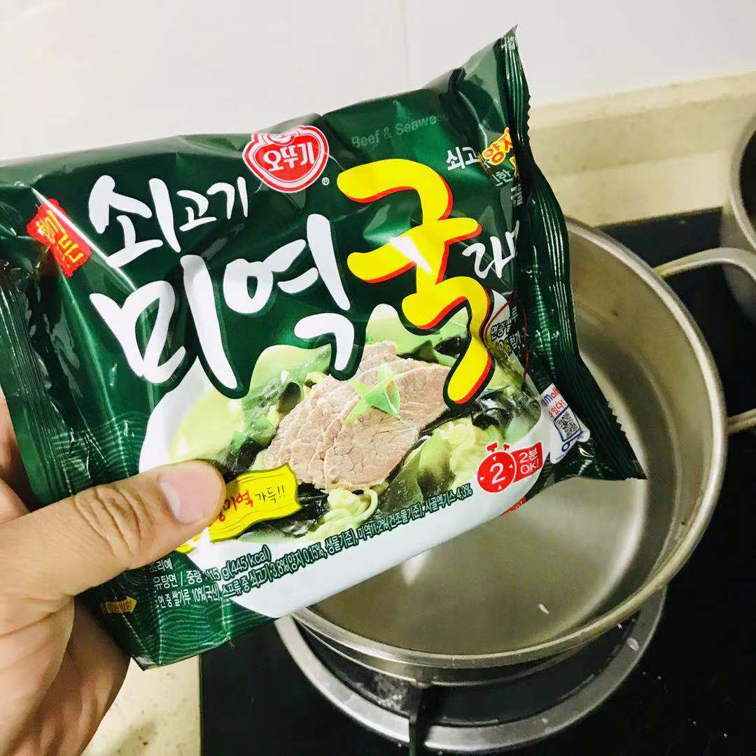 한국에서 온 손님이 손수 들고 온 갓뚜기 소고기 미역국 라면을 손님을 돌려 보내고 서 드디어 영접했다.