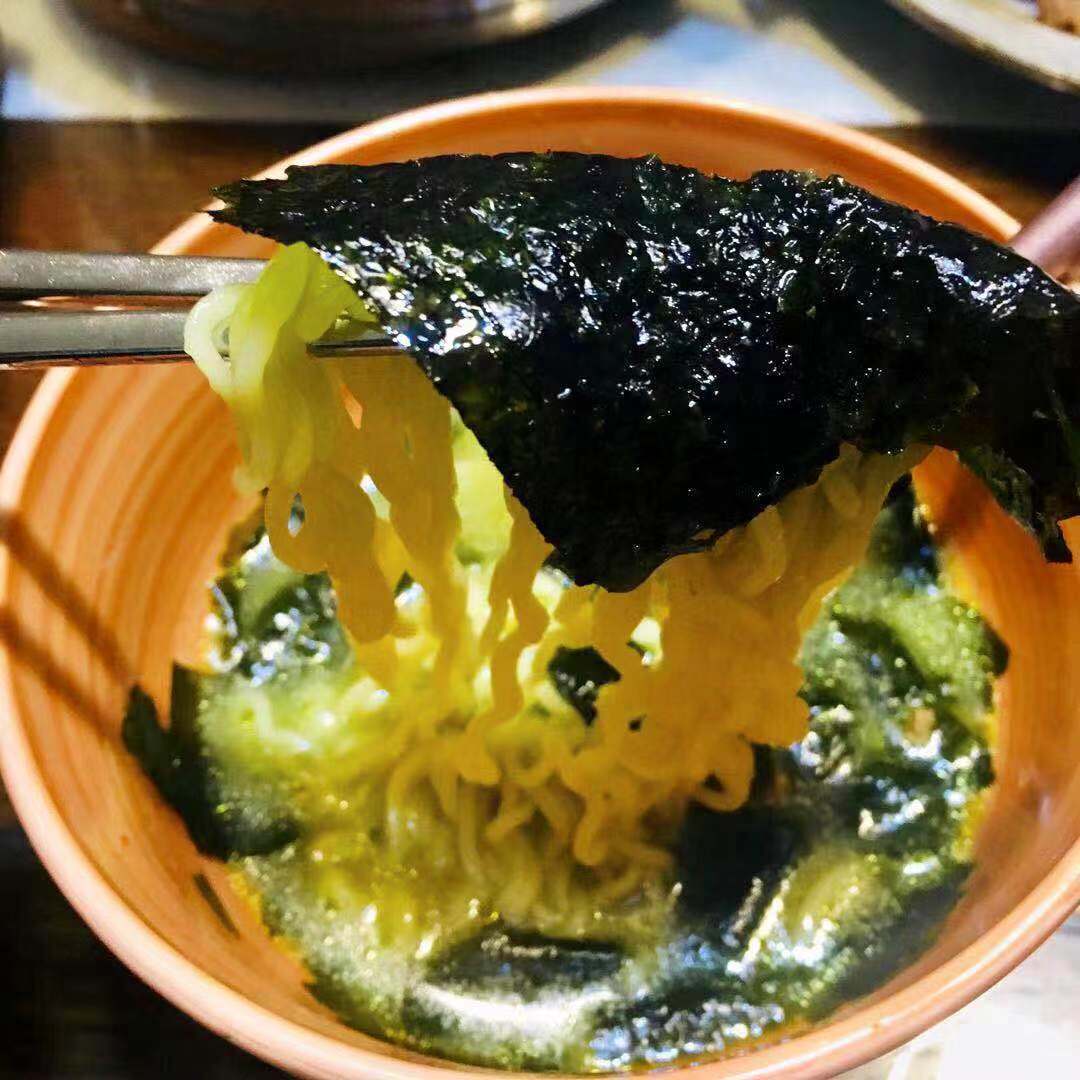 나는 신라면이나 너구리, 삼양라면 등등을 먹을 때 김을 같이 먹는다. 무한도전 유느님께서 TV에 나와서 이런 식으로 라면을 먹는 모습이 방송을 타 널리 알려졌지만, 나는 이렇게 먹은 지가 굉장히 오래됐다. 아니 라면만 먹어도 짠데 거기에 김을 또 왜 싸먹어요. 라고 하는 사람은 그냥 라면을 먹지 마라. 건강 생각하면 라면을 왜 먹나. 그냥 생식하지. 근데 보통의 경우 김이 해초 느낌이 나고 풍미가 있어 라면이 맵든, 순하든, 짜장 양념이든 잘 어울리는데 압도적으로 미역이 많이 들어 있는 미역국 라면에는 오히려 거추장스러울 뿐 맛을 더하거나 풍미를 더 하지 못했다. 오히려 참기름에 들기름 섞은 것처럼 맛난 미역국 육수 맛을 해친달까? 그랬다. 그래서 그냥 집에 재래김만 있다면 미역국 라면 오리지널 버전으로 먹는 게 나을 것 같다.