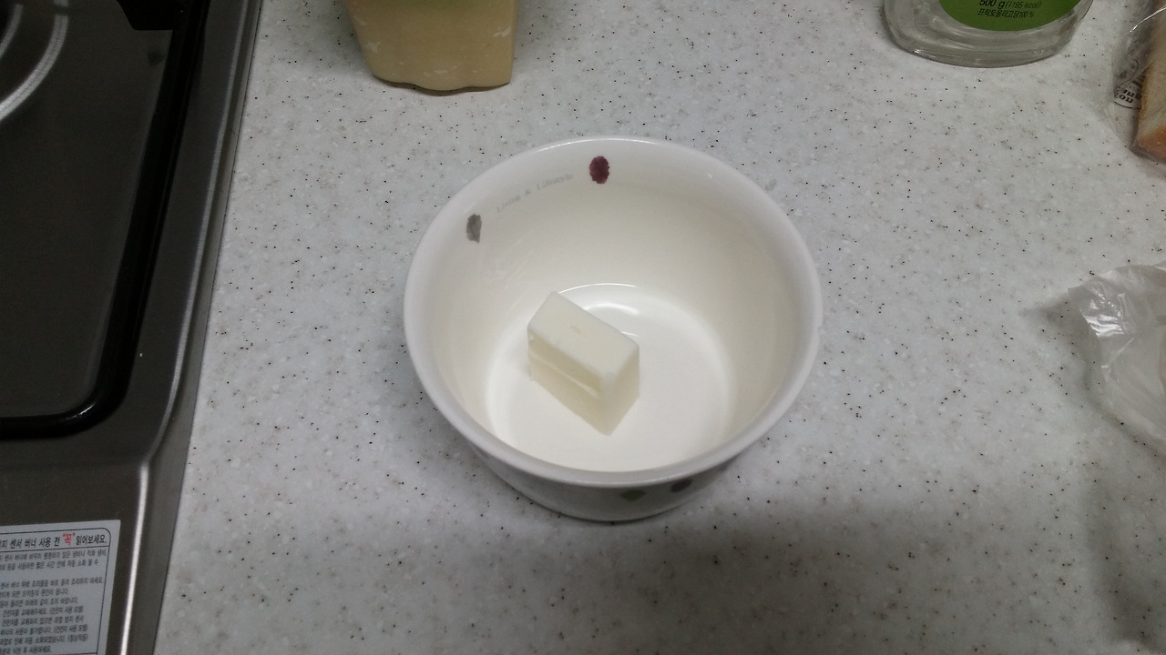 버터를 적당량 잘라서 전자렌지 쓸 수 있는 그릇에 담습니다.