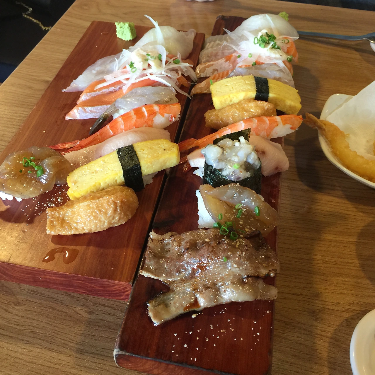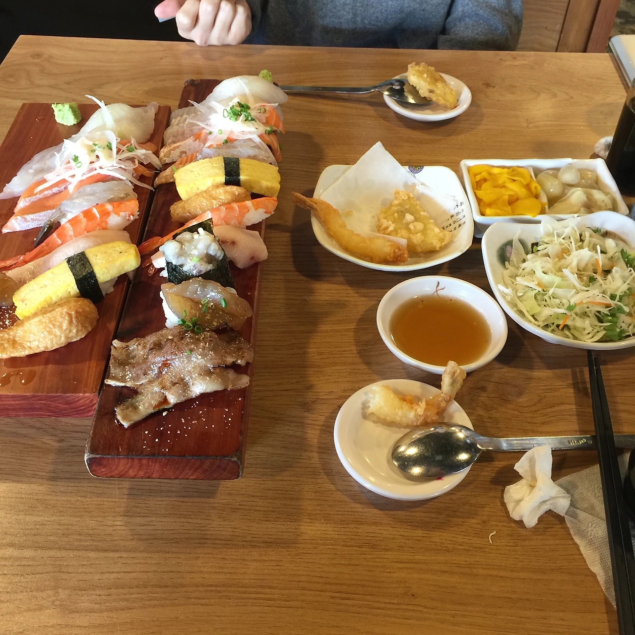 초밥 가까이서 찍기, 두 정식이 서로 겹치는 초밥도 있고 해서 사이 좋게 나눠 먹을 수 있습니다.