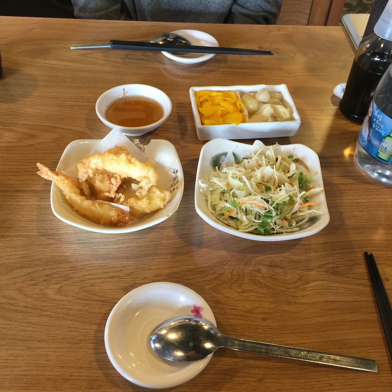 런치정식(10000원), 키움초밥(12000원) 시켰더니 샐러드랑 새우튀김, 고구마튀김이 나왔습니다.