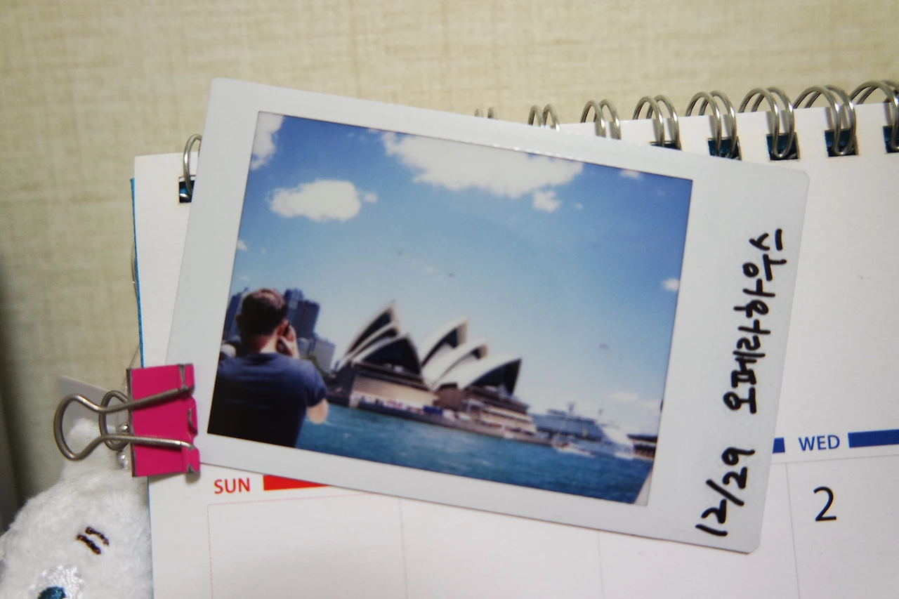 페리를 타고 왓슨스베이 가는 길에 찍은 오페라하우스, 구름도 좋고 오페라하우스도 내 눈에 보이는 만큼 멋지게 나와서 엄청 마음에 드는 폴라로이드 사진 중에 하나다.