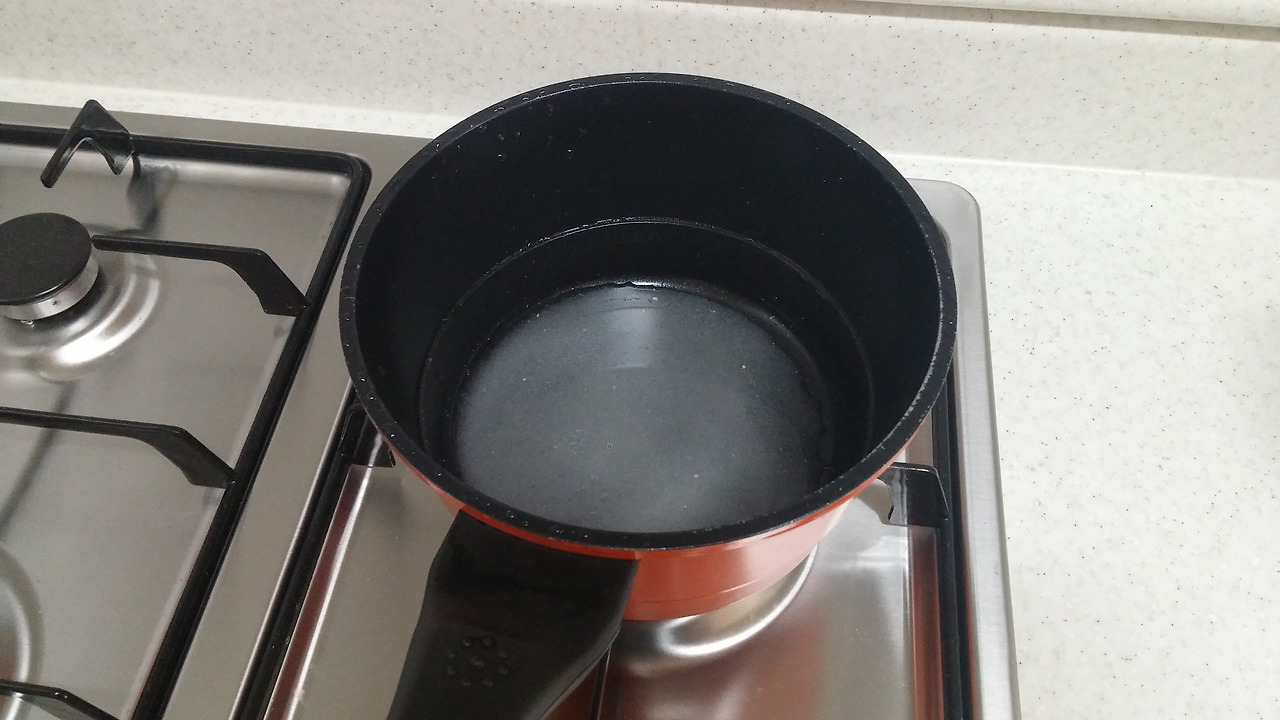 설탕 60g과 물 2숟갈을 잘 펴서 중약불에 끓여줍니다.