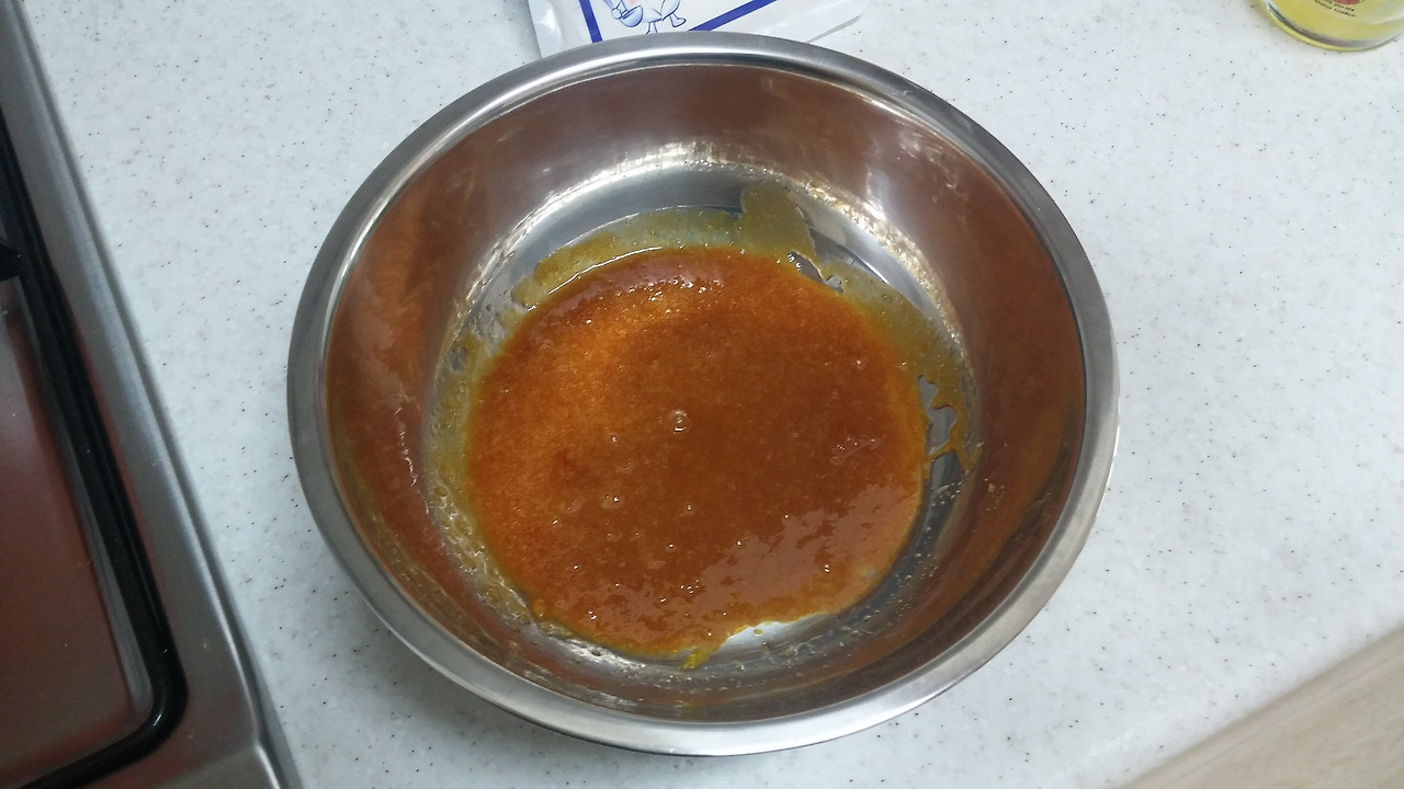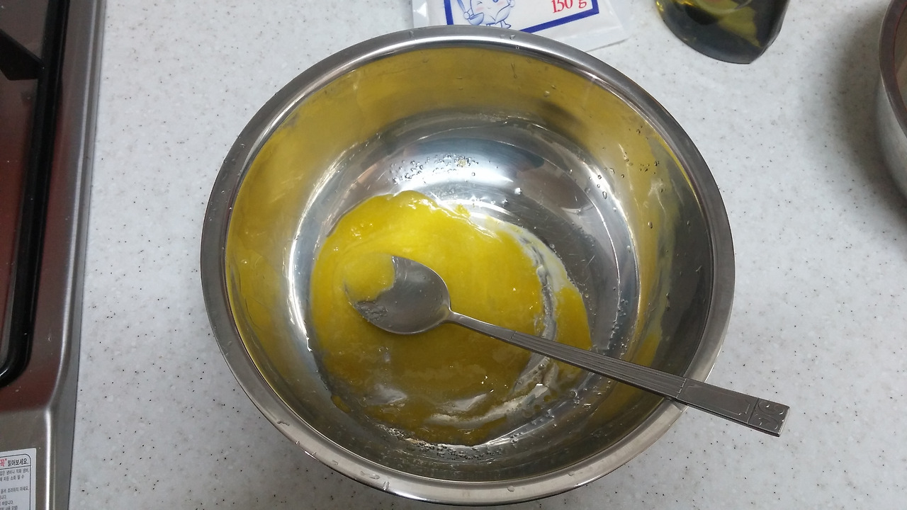 아까 노른자랑 다 섞은 볼에 넣은 건데 카라멜 양이 너무 많아서 안 보이네요. 아무튼 잘 섞어줍니다.