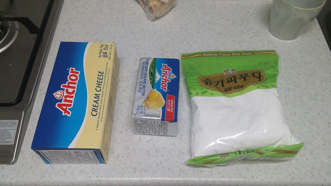 슈가파우더 150g, 버터 150g, 크림치즈 300g