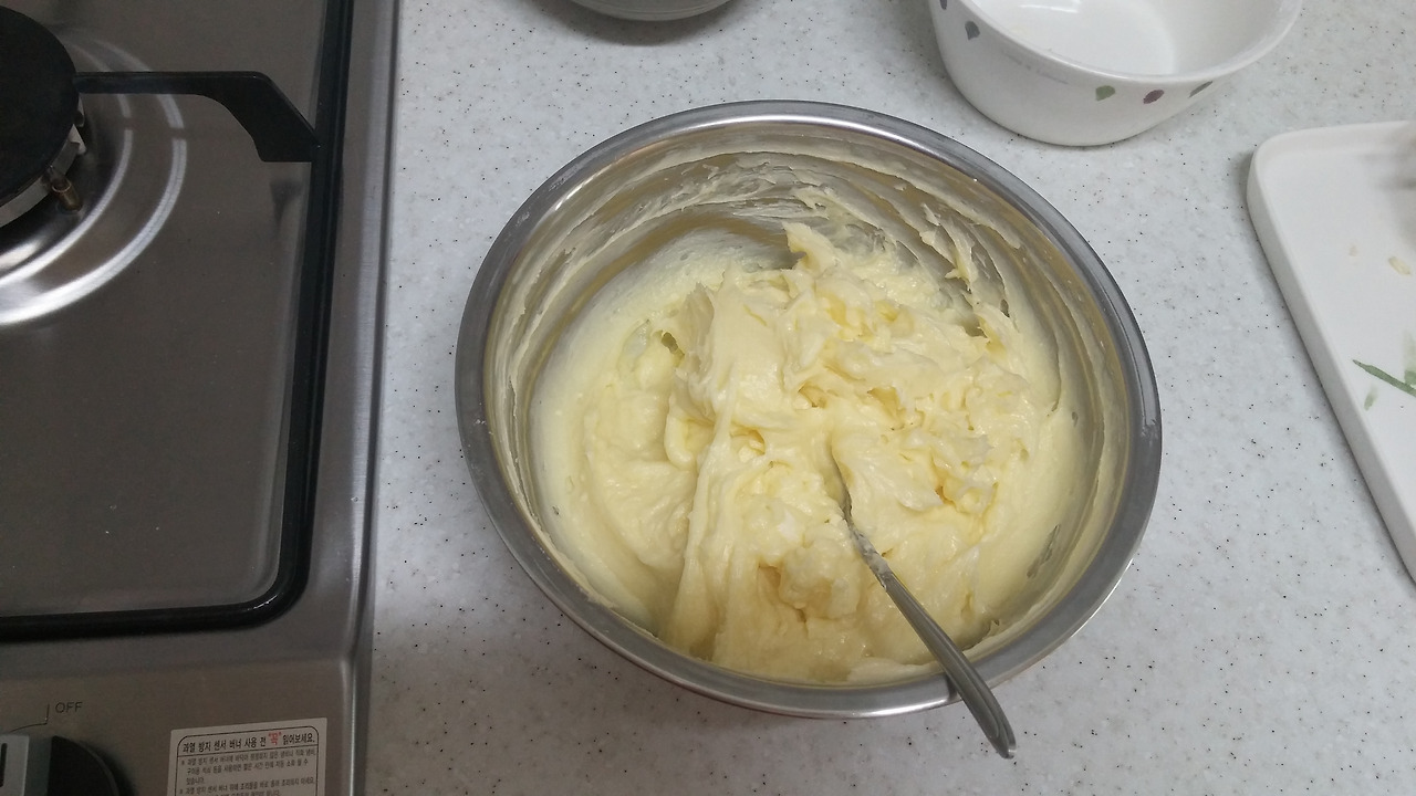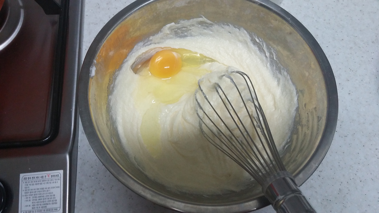 크림치즈-버터-슈가파우더 순으로 크림화를 시켜주면서 섞어줍니다.