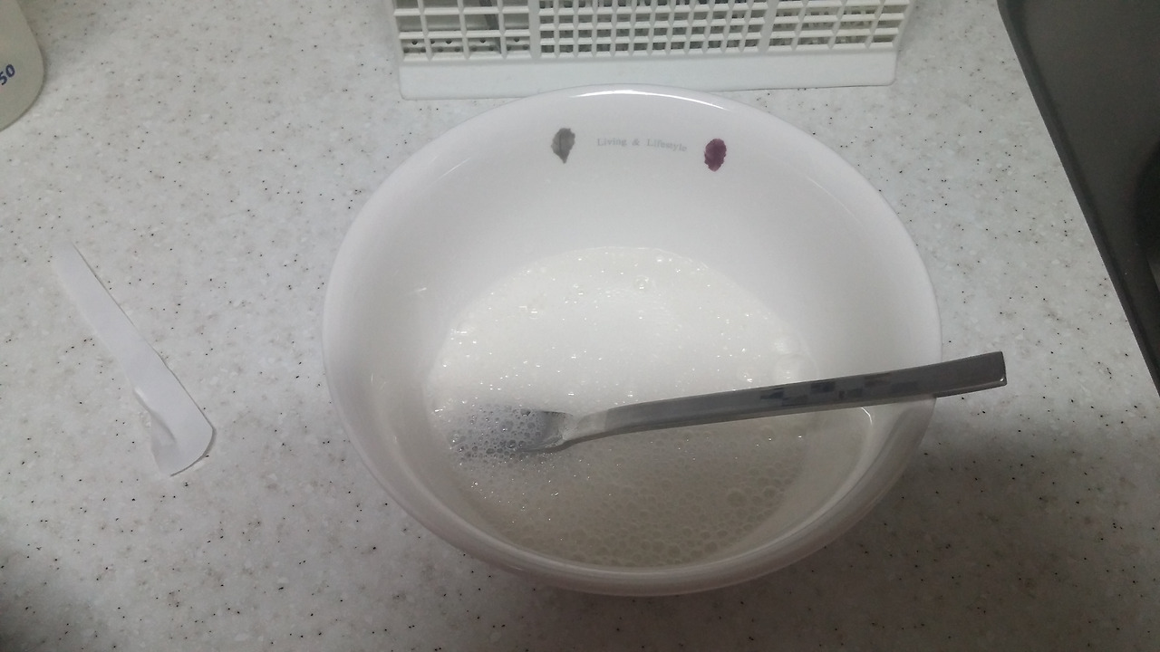 식초 12g와 베이킹소다 4g을 섞어 줍니다.