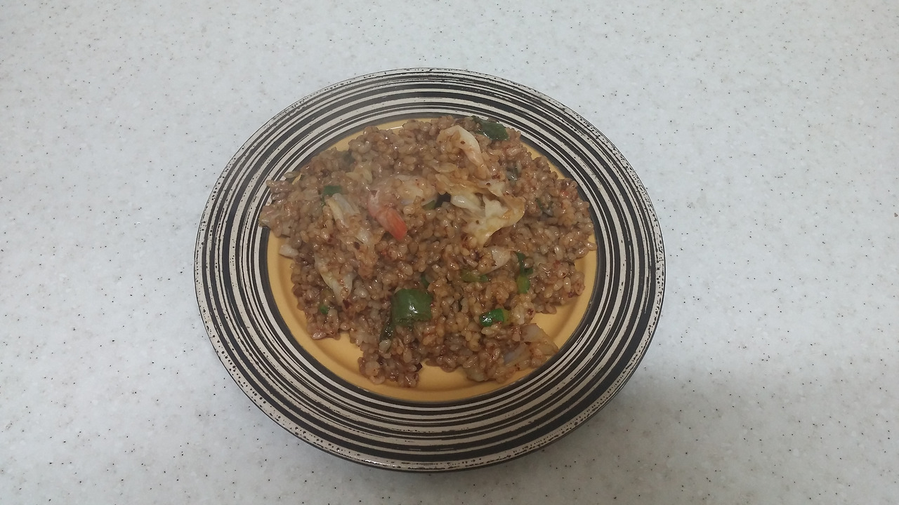 완성. 야끼라면에서 면 대신 밥으로 만든건데 맛있었어요 :-)