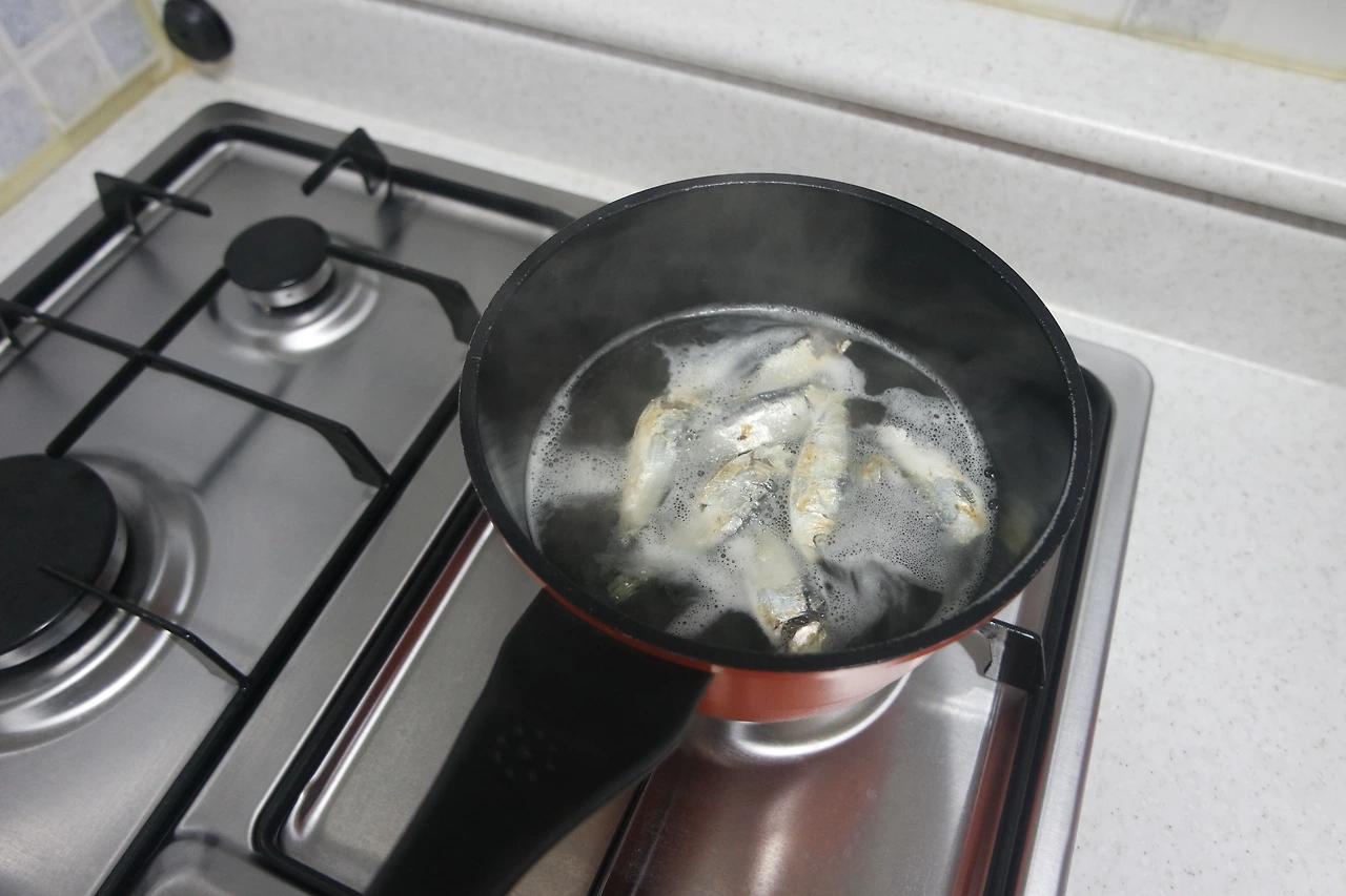 디포리를 물에 넣고 육수를 만들어줍니다.
