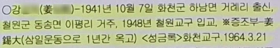 특히 가장 중요했던 강석대 독립운동가와의 관계 역시 나와 있었는데, 강석대의 '석'자가 지금까지 여러 자료에 나와 있던 石 자는 아니었다.