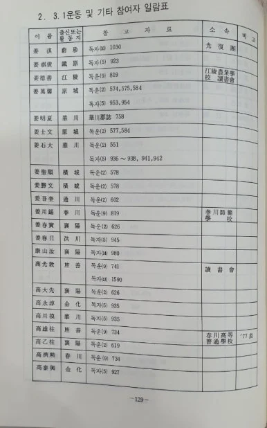 먼저 강원도사편찬위원회에서 2017년 발간한 '강원도사 20, 의병 독립운동'에는 강원도에서 활동하신 독립운동가들의 성명과 공적을 볼 수 있었다.