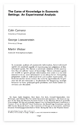이와 관련한 스터디가 있습니다. 경제학자 캐머러, 로웬스타인, 웨버가 연구했던 개념 ‘지식의 저주’입니다.