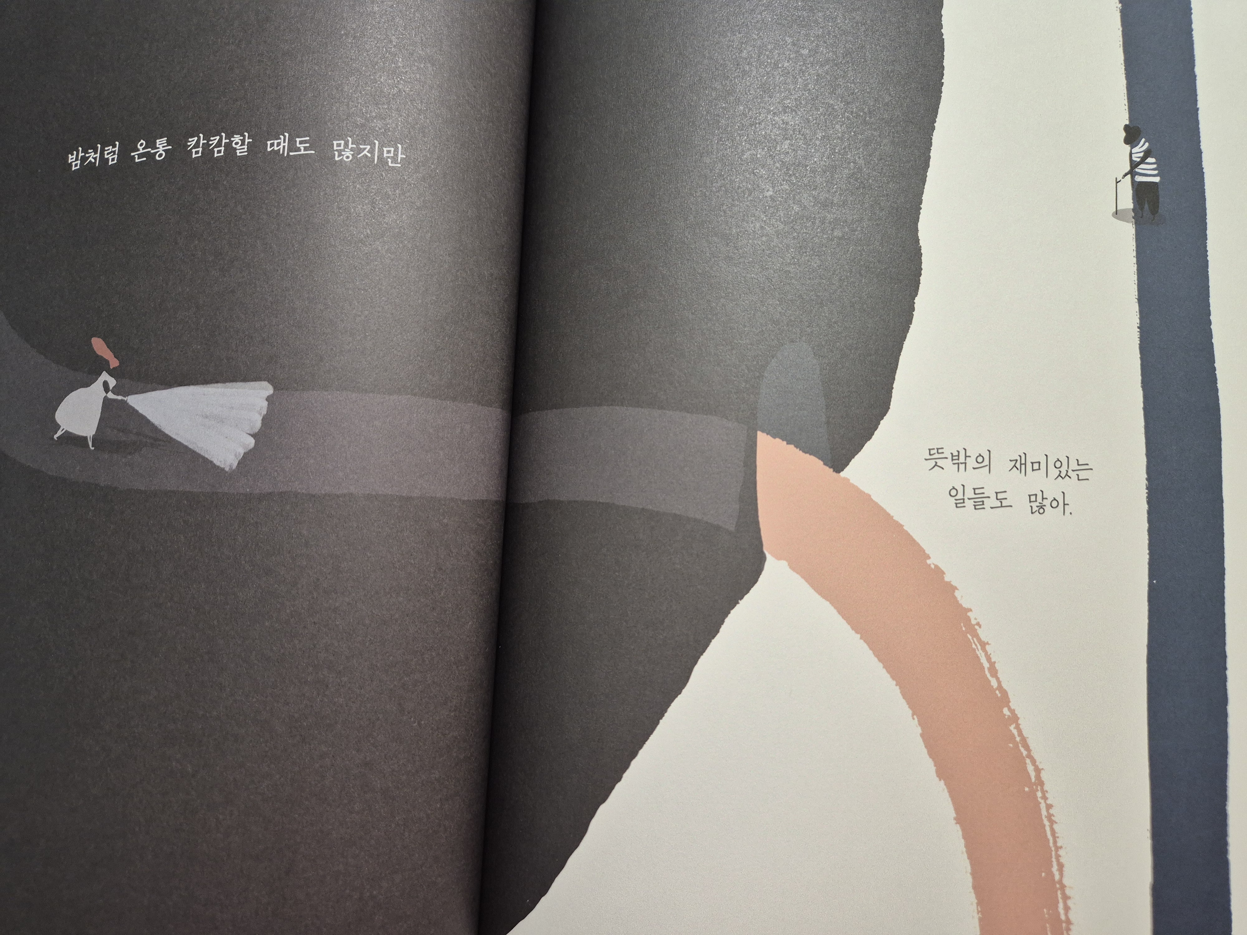 몇 장 되지 않는 그림책의 장면 장면, 글 한 줄 한 줄이 내가 살아온 날들의 어떤 경험과 맞물려 새로운 세계에 발을 들인 기분이었다. 그림과 그림 사이, 문장과 문장 사이의 빈틈은 읽는 사람의 경험치에 따라 다양하게 해석되는 부분도 흥미로웠다. 누군가에겐 유쾌한 기억을 소환하는 장면이 누군가에겐 아픈 기억을 떠올리는 버튼이 되기도 했다. 그림책 속을 흐르는 감정들은 마치 점토처럼 누군가에겐 어린 날의 나를 만나러 가는 기차가 되기도 하고, 누군가에겐 그 옛날 아빠가 퇴근길에 사다 준 따끈한 찐빵이 되기도 할 것이다.