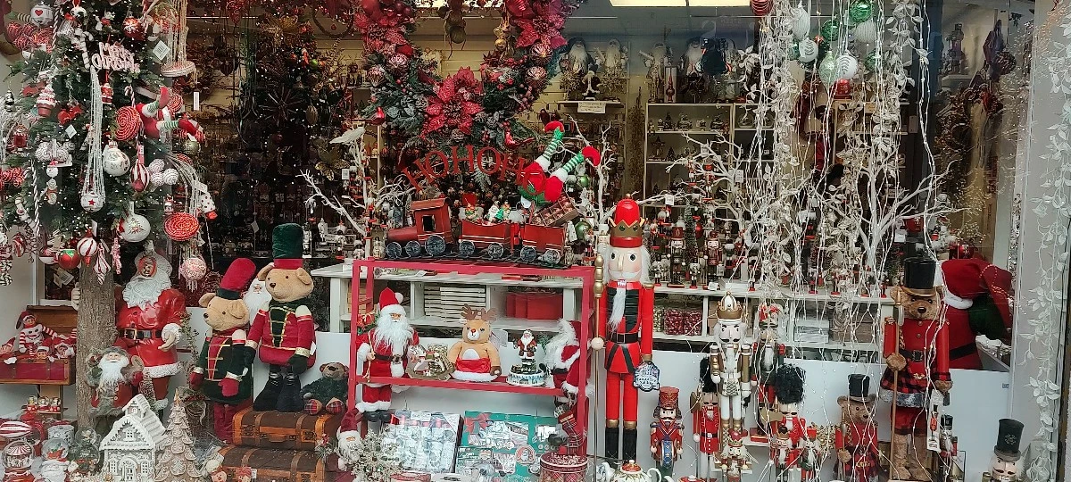 귀엽고 사랑스러운 크리스마스 장식품을 파는 상점