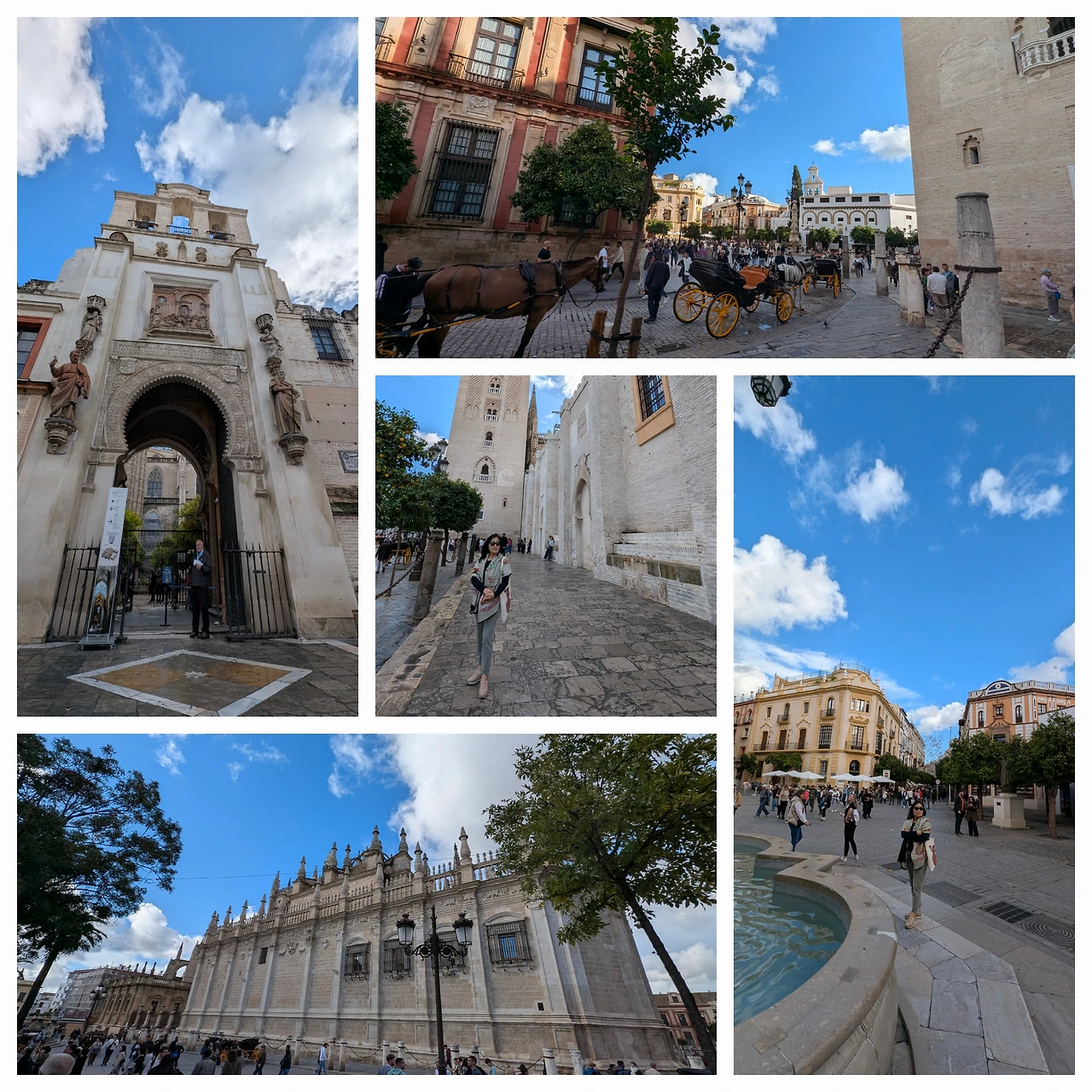 늦은 오후, 세비야 대성당 앞 광장은 파란 하늘 아래 여전히 밝고 활기찼다.