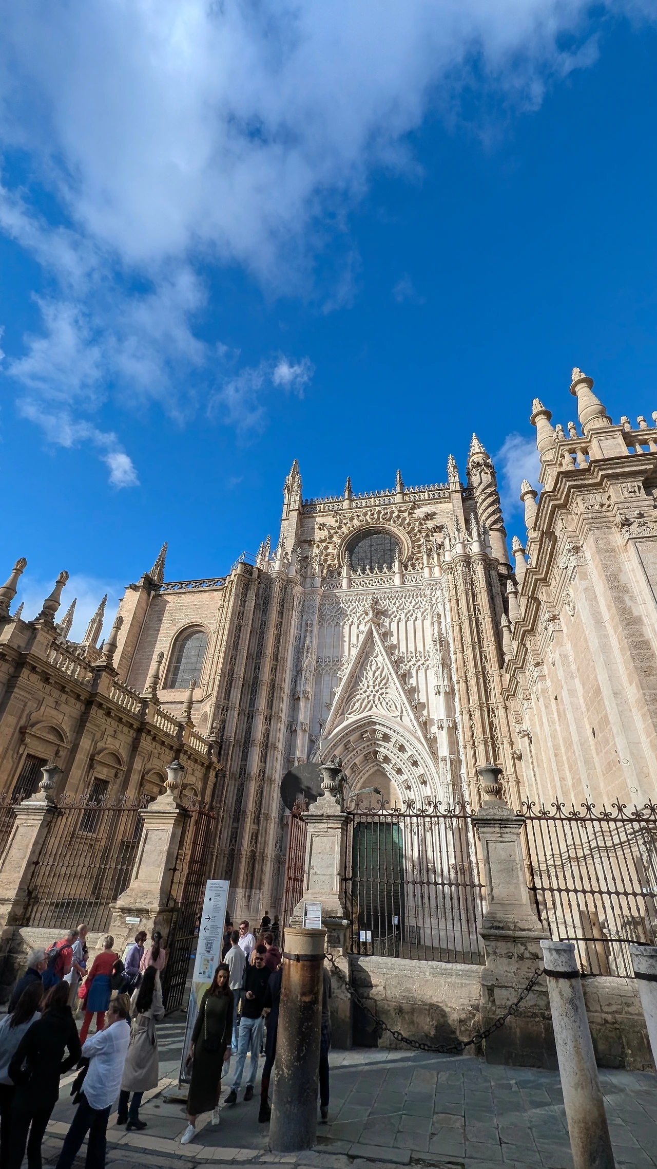 세비야 대성당은 바로 이 역사의 중심에 자리한다. 원래 이 자리에는 이슬람 사원이 있었으나, 15세기 초부터 고딕 양식으로 재건되어 지금은 세계에서 가장 큰 고딕 성당 중 하나로 손꼽힌다. 정면에서 바라보면 높게 치솟은 첨탑과 정교한 조각이 장엄함을 더하고, 한쪽에는 이슬람 시대의 종탑이었던 ‘히랄다(Giralda)’가 남아 기독교적 장식과 어우러진 독특한 아름다움을 보여준다.
