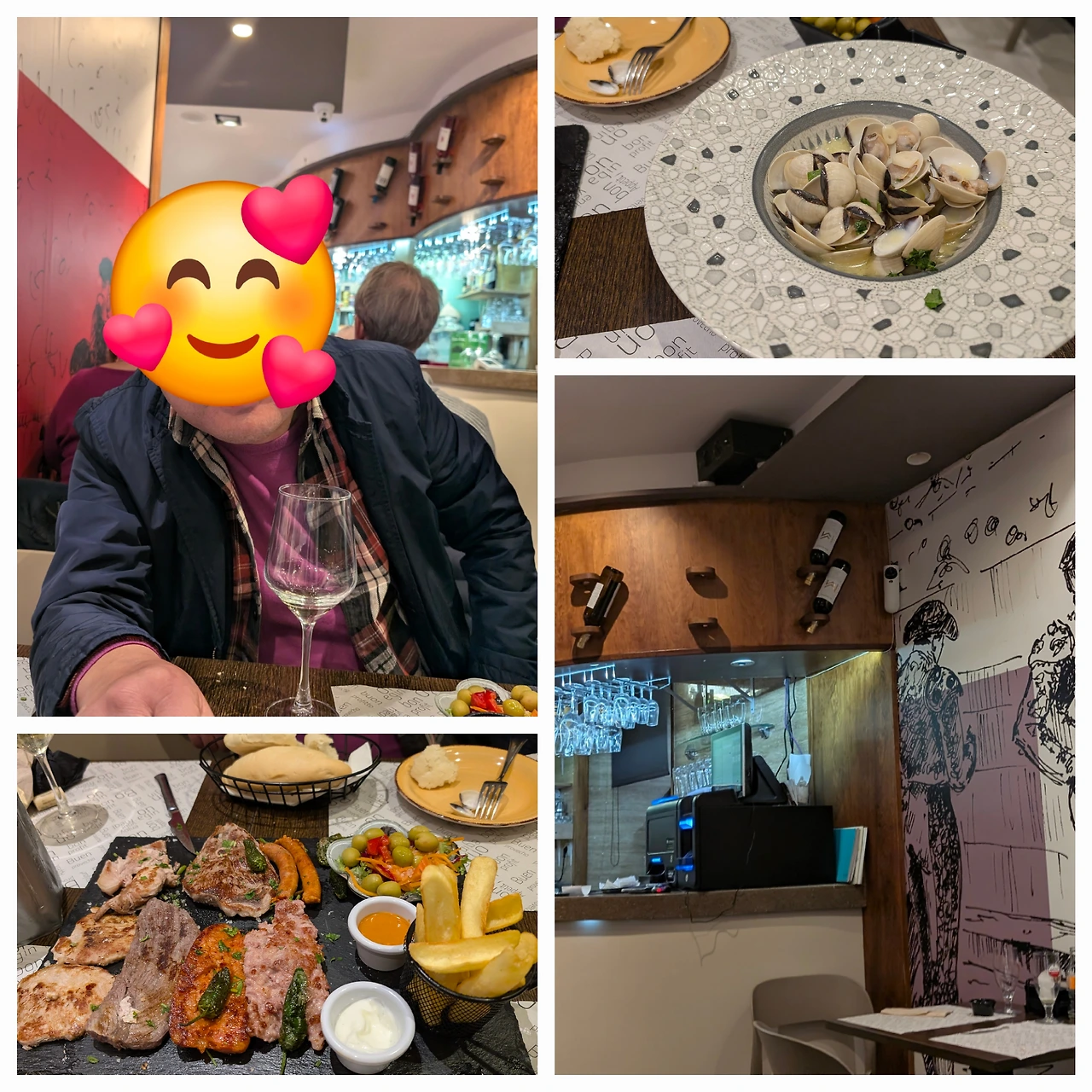 낯선 골목 사이로 기념품 가게들이 고개를 내밀고, 사람들의 웃음소리와 목소리가 살짝 섞여 들었다. 어느 순간, 타파스 골목으로 이어지는 작은 표지판을 발견했다. 그 길로 들어서자 밤이 더 가까워졌다. 좁은 길을 따라 늘어선 작은 바와 레스토랑들, 문 앞에 놓인 메뉴판과 와인 병들이 저녁의 분위기를 부드럽게 만들었다. 우리는 그중 한곳으로 들어가 하루를 마무리할 타파스와 와인을 주문했다.