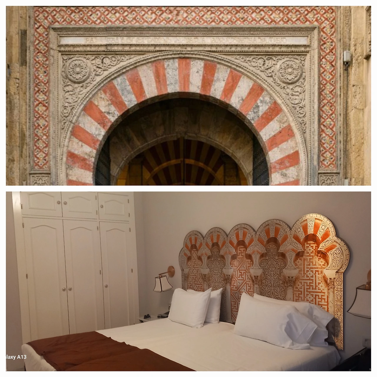 코르도바를 떠날 채비를 하며 짐을 챙기던 호텔방에서, 나는 또 하나의 메스키타를 발견했다. 중세 기독교 수도원과 성직자들의 거처로 쓰였던 이 호텔은, 안뜰은 물론 곳곳이 시간의 결이 고스란히 남아 있는 공간이다. 침대 프레임 문양은 방금 전 나섰던 메스키타의 출입문을 닮아 있었고, 나는 그 닮음을 한동안 바라보았다.