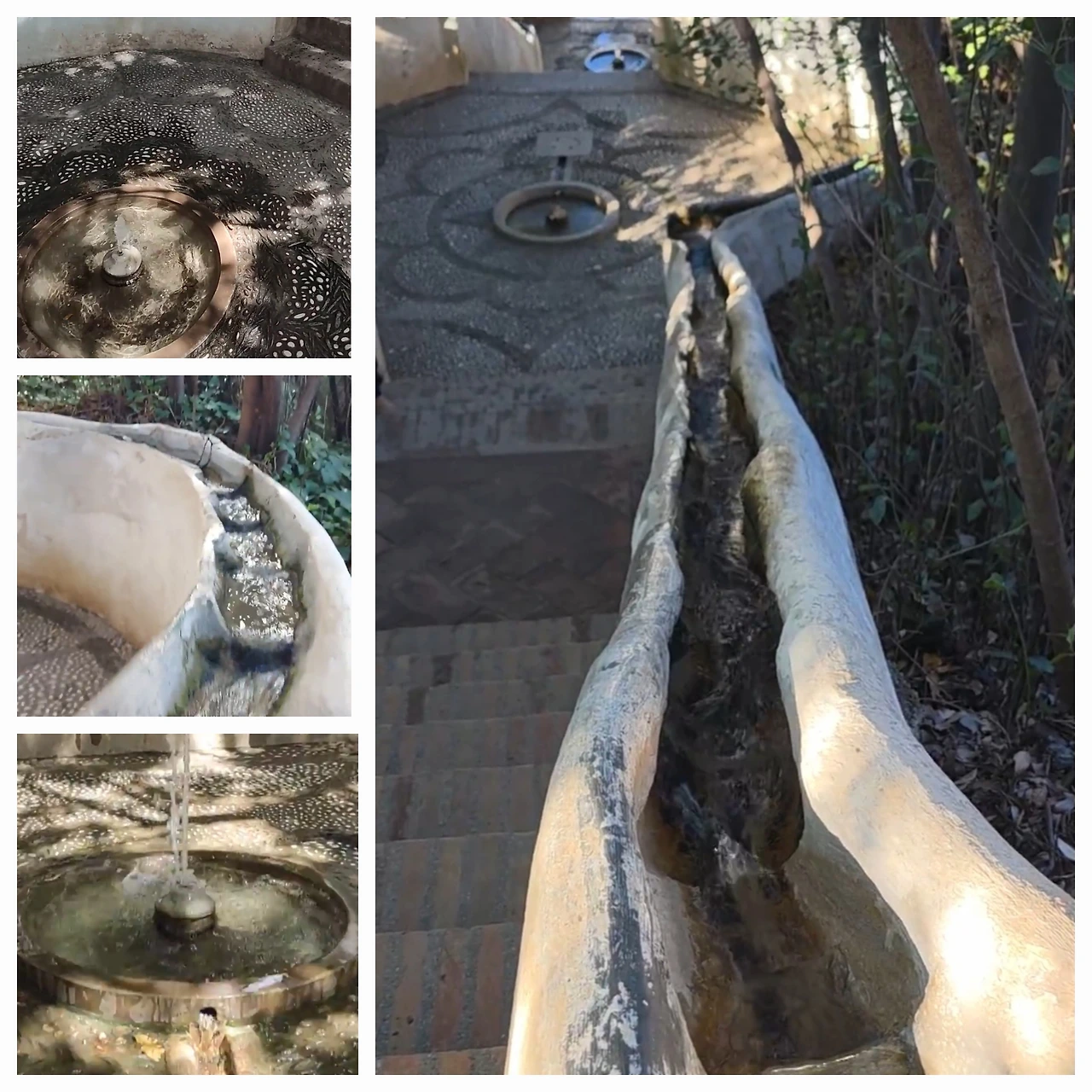 이 물길은 다로 강(Río Darro) 줄기에서 끌어온 물을 시작으로, 알함브라와 헤네랄리페의 정원과 궁전 곳곳을 적시는 왕실 수로에서 흘러왔다. 상류에서 흘러내린 물은 각 계단과 분수, 연못을 지나며 햇살과 바람, 물소리와 어우러졌고, 궁전 안의 회랑과 안뜰, 헤네랄리페의 테라스를 모두 연결했다.