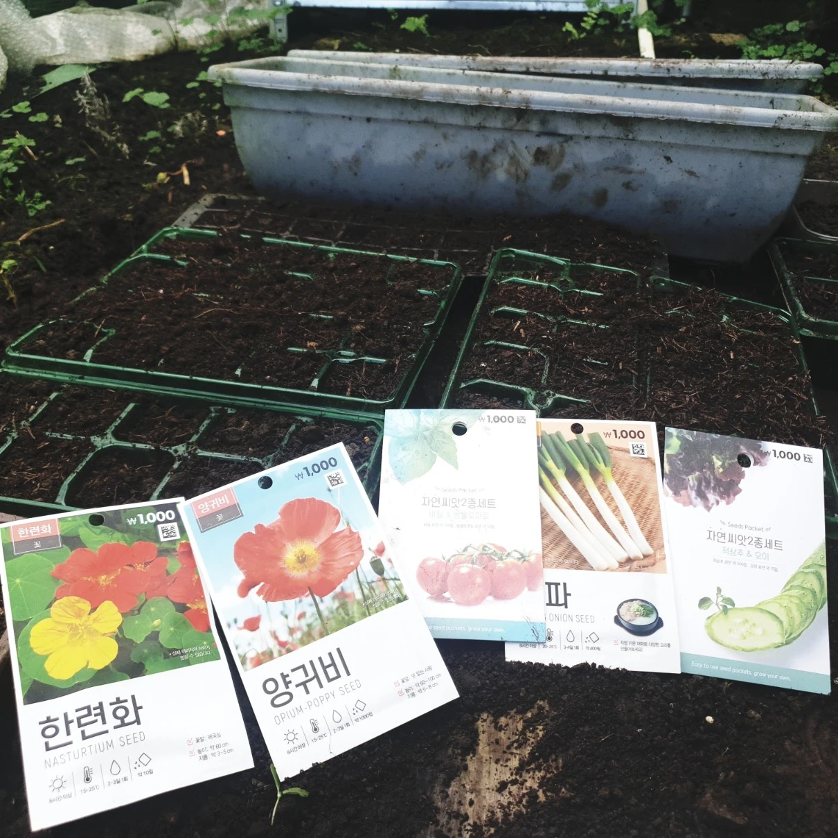 가든을 텃밭으로 변신시키며, '한국의 모든 씨앗들을 다 가져와 심어야지.' 마음먹었던지라 어디서든 눈에 보이는 씨앗들은 다 사들고 들어왔다. 무슨 씨앗이든 씨앗만 보이면 그것을 먼저 챙겨 들고 씻어 말리는 저를 보고 어머니도 그렇고 주변 지인들 까지도 자신들이 먹던 과일이나 주변의 씨앗들을 따다가 곱게 말려 싸주시는데 그걸 허투루 두고 올 수 없어 꽁꽁 싸매 고이고이 들여왔지요.