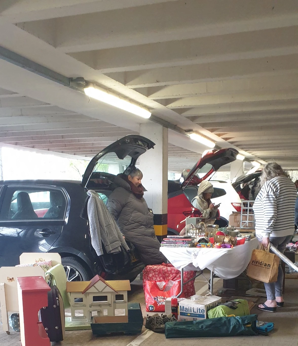 차 트렁크에서 나온 물건들은 옷가지, 신발, 가전제품, 도자기, 그림, 가구, 책, 장난감, 식물, 악기는 물론, 저걸 누가 사갈까 싶은 잡동사니 등 엄청나게 다양하다. 정리안 된 정신없는 박스를 통째 내놓기도 해, 거기서 보물찾기 하는 마음으로 쓸만한 걸 찾아내야 하는 수고로움도 즐겁고, 우리 같은 집돌이, 집순이들이 주말 오전 한나절 보내기엔 안성맞춤이다.