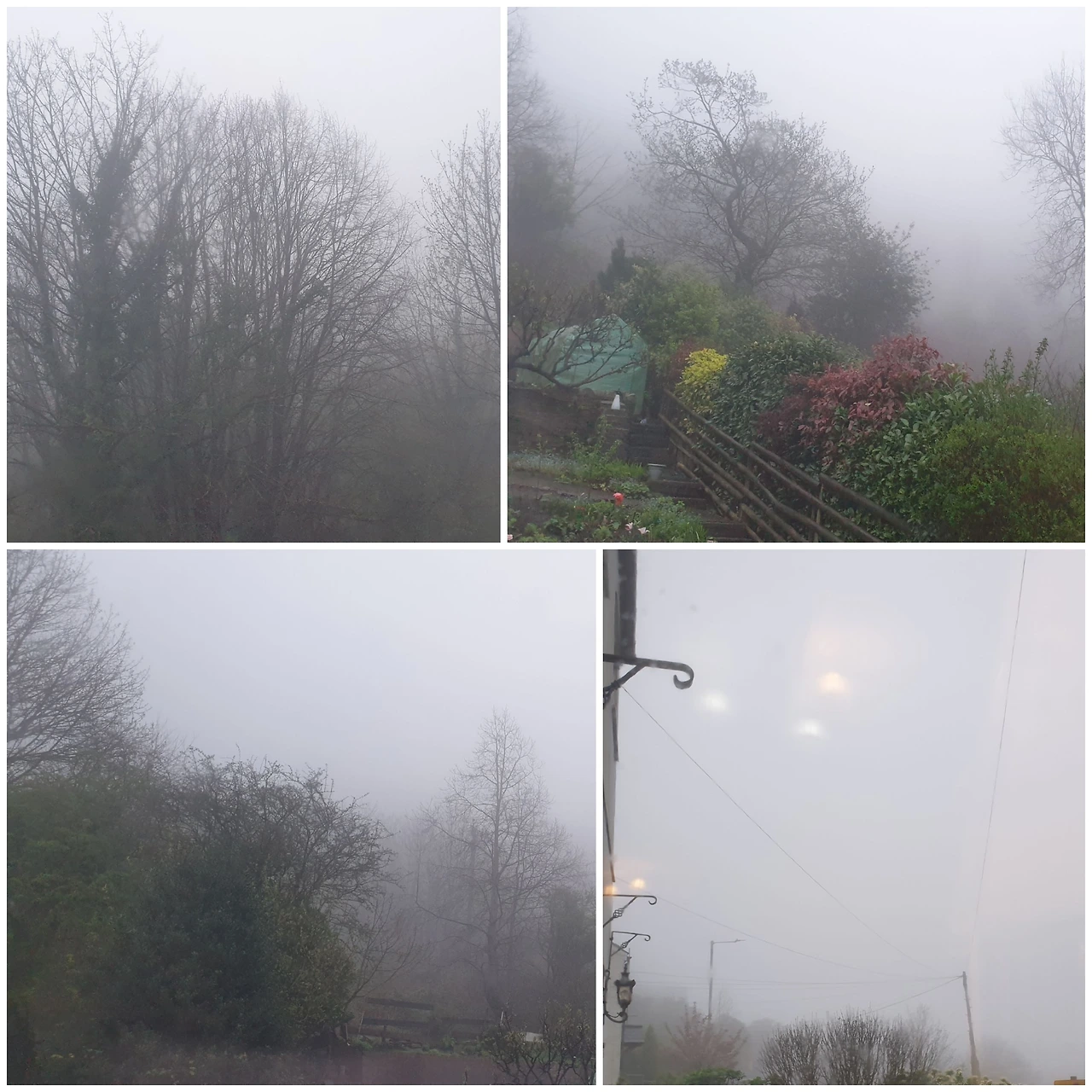 3,4월인데도 음습한 안개가 울타리를 넘어 들어와