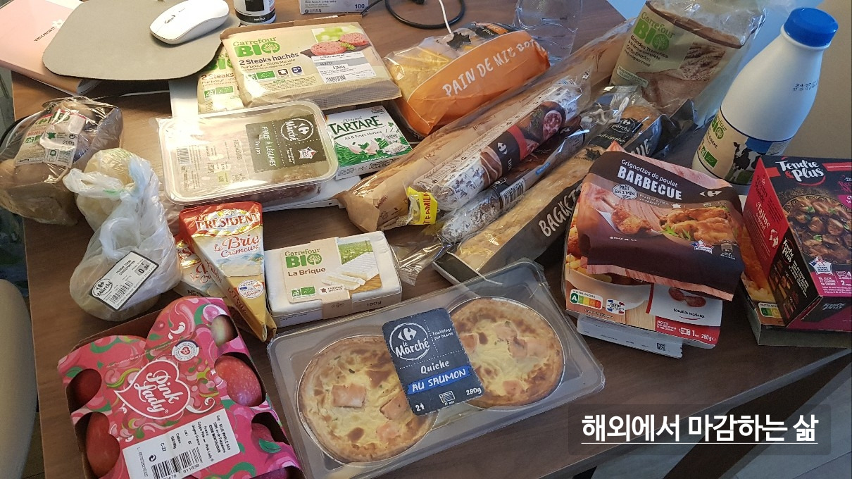 프랑스의 자가격리는 한국처럼 엄격하지 않았다. 식재료나 의약품 구입을 위해서는 외출도 가능했다. (산책이나 운동도 가능하다고 듣긴 했으니 확실하진 않음) 그런데 소심한 나는 남의 나라에 와서 괜한 민폐를 끼치게 될까봐 일절 외출을 하지 않았다. 음식은 음성 판정이 나온 남편이 사다가 호텔 방문 앞에 내려놓고 갔다.