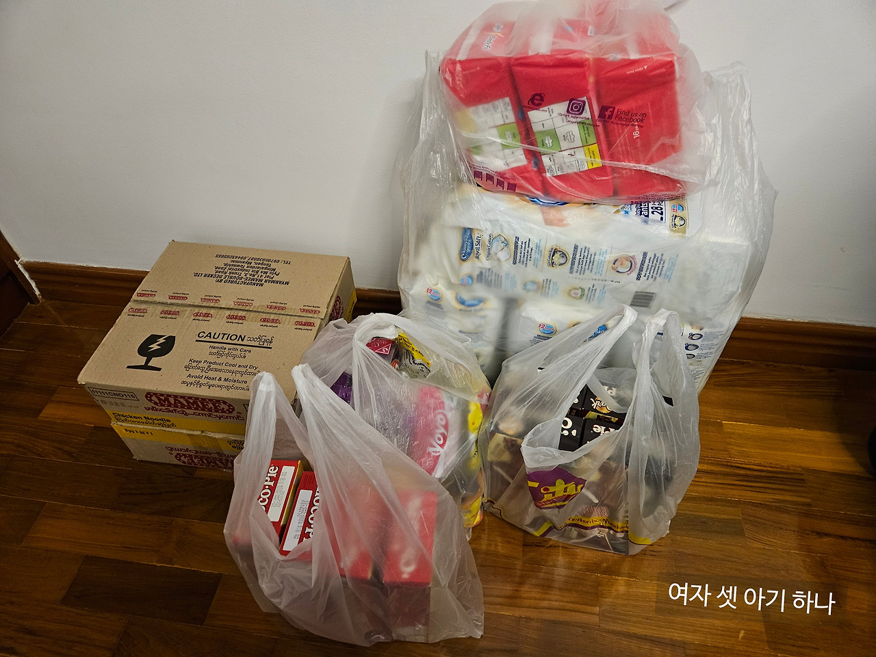 양곤에서 생긴 버릇 중의 하나가 필요한 물건이 마트에 있을 때 넘치게 사두는 것이다. 특히 수입품의 경우 언제 다시 입고될지 모르기 때문에 타협하기 힘든 아기 물건은 사재기하곤 한다.