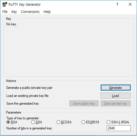 따라서 putty 파일을 설치하고, puttygen을 실행한다.