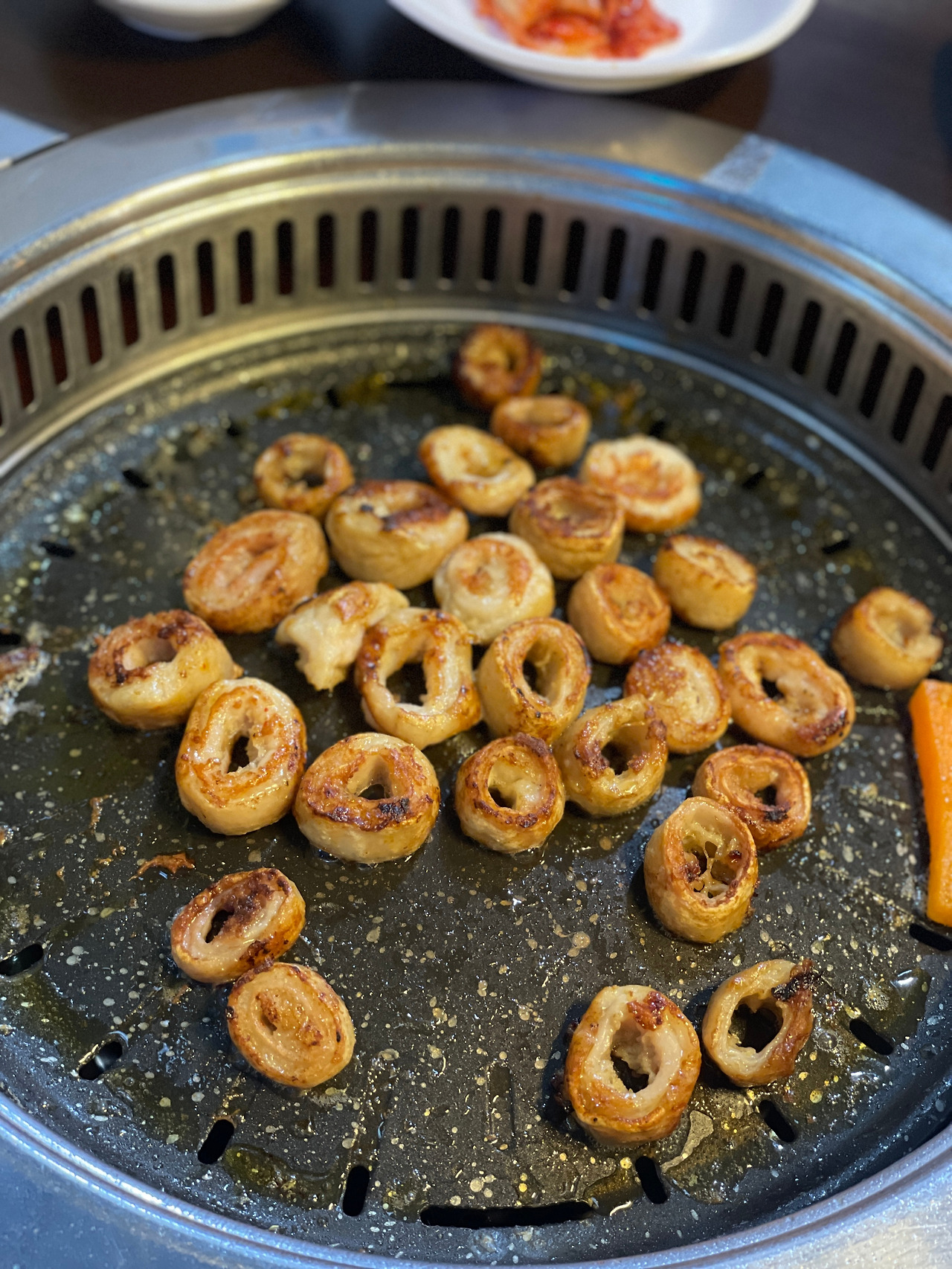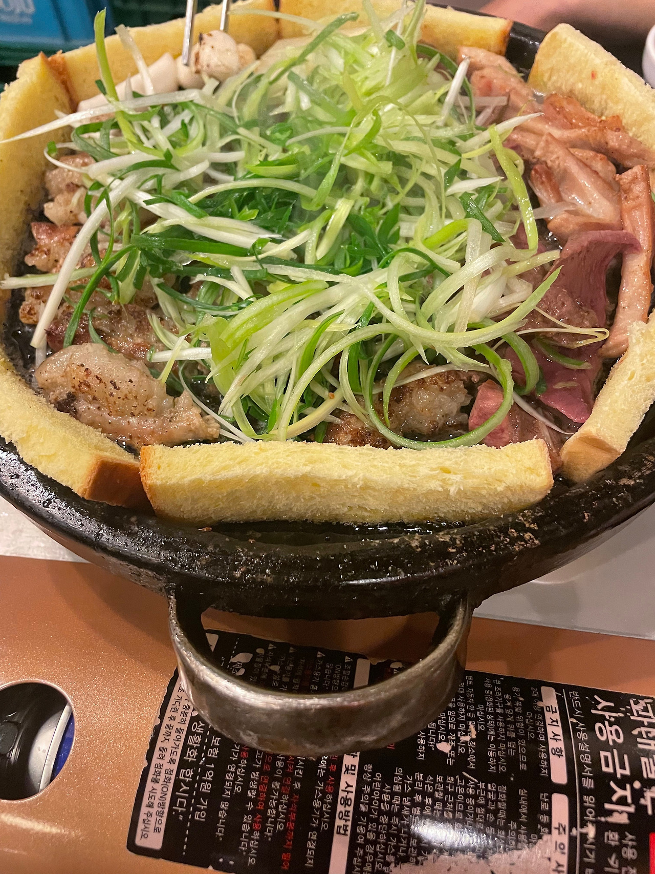 대학생이 되고 나서는 대학교 동기들과 정말 많이 고기를 먹었다. 먹는 고기의 종류도 다양해졌고 요리 방법도 가지각색이었다. 대학생 때 가장 많이 다녔던 곳은 천변을 따라 있던 고기뷔페였다. 지금은 열기가 시들해졌지만 그때는 두꺼운 삼겹살을 무한리필해주는 고깃집이 유행이었다. 대학생 신분에 건장한 청년 여럿이 모여 인분 단위로 계산해야하는 고기를 먹으려니 주머니 사정이 허락하지 않았고 그럴 때 고기뷔페는 좋은 선택지가 되어주었다. 또 학교 맞은 편에 공기밥을 무한리필해주는 제육볶음 맛집이 있었다. 봄이면 된장찌개에 냉이도 넣어주셨던 것으로 기억하는데 전역 후 다시 찾아가보니 문을 닫아 안타까웠던 기억이 있다.