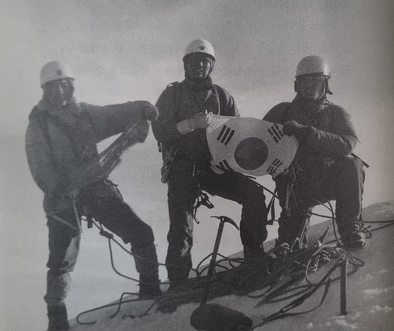 (맨 왼쪽이 정광식, 그 옆이 남선우, 맨 오른쪽이 김정원. 사진출처 : 아이거 북벽)