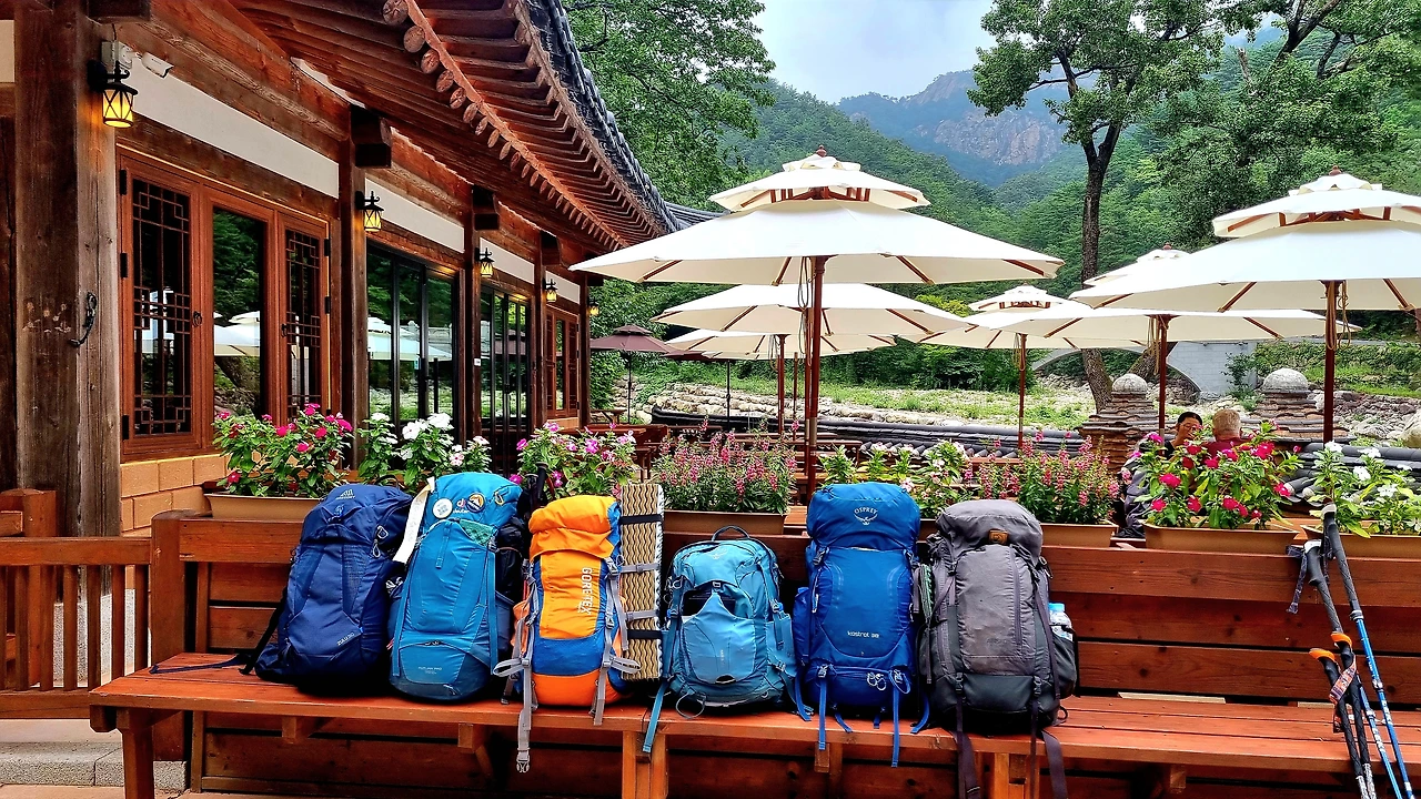 숙박팀들 중 대청봉 오르는 팀들과 공룡 타는 팀은 새벽에 떠났고, 하산하는 우리는 느긋하게 일어나서 새벽공기 듬뿍 마시며 아침 먹고 커피 마시고 천불동 계곡을 따라 천천히 하산했다.