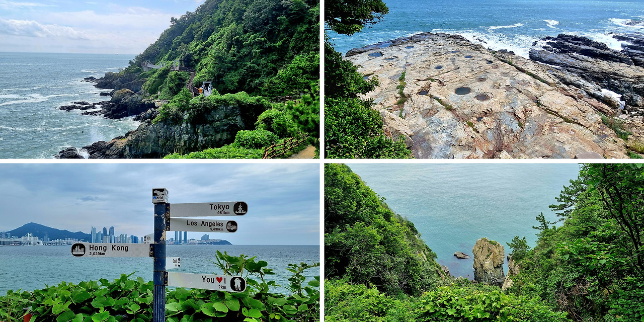 여기서부터 산책로가 바닷가 길 (아랫길)과 허리길(중간길)로 나뉘었다가 일정 거리 후에 합쳐진다. 평소처럼 바닷가 길로 갔다가 중간 길로 오기로 한다.