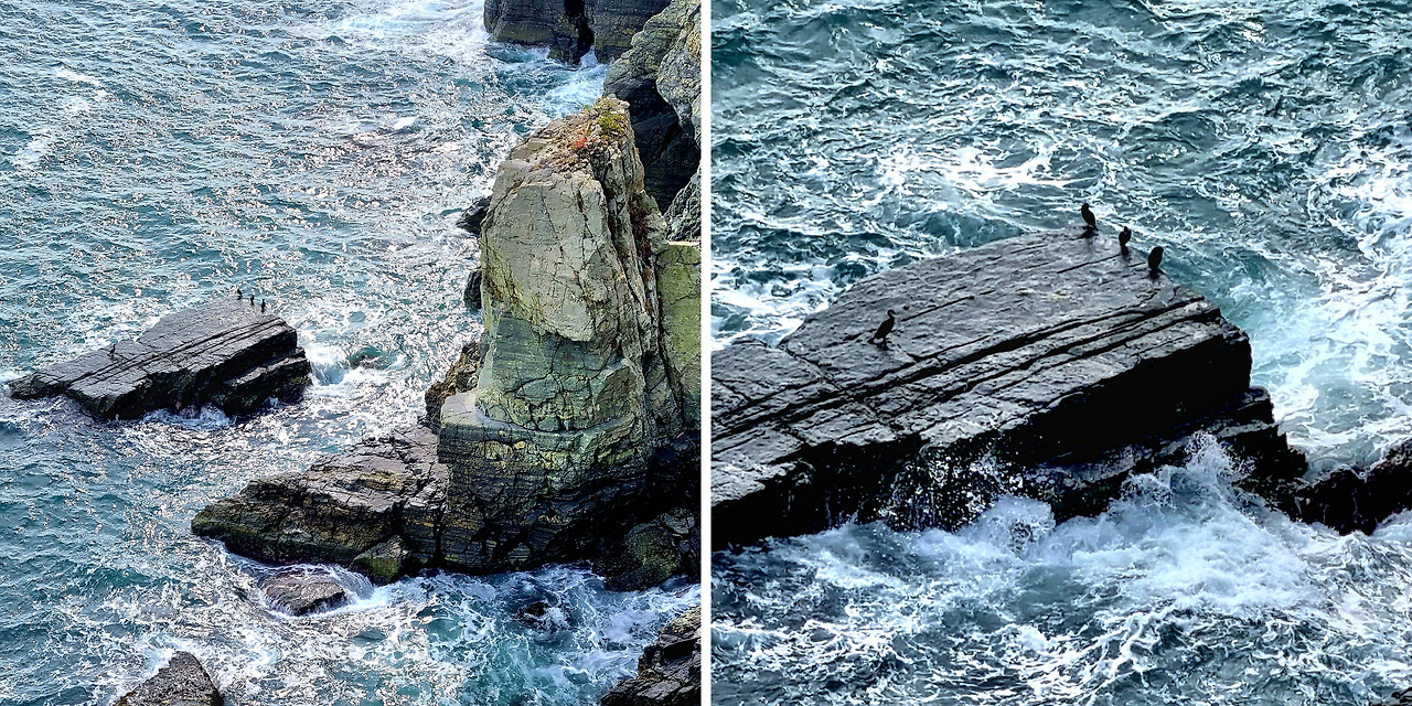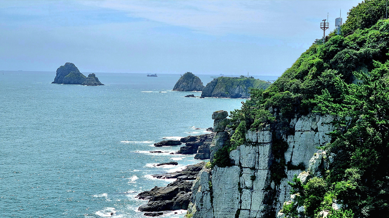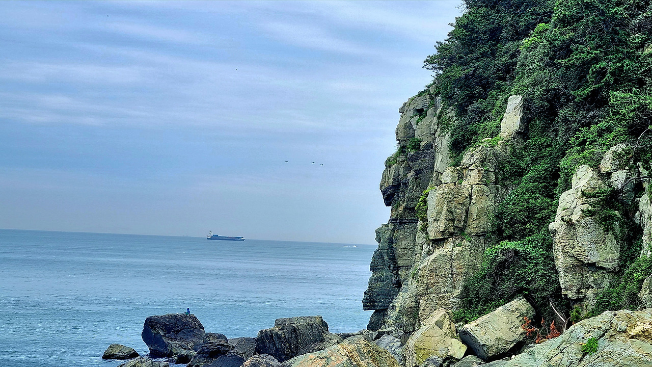 전망대에서 제주 외돌개 비슷하게 생긴 바위를 바라보며 커피를 마신다. 바다를 바라보고 있는데... 저게 뭐지? 자세히 보니 해오라기다. 대장 앞에서 차렷 자세로 듣고 있는 모양새가 묘해서 ‘600 만불의 사나이’처럼 줌으로 댕겨본다. 대장이 외치고 있다. “이 근처에 고기는 많은데 낚시 바늘, 버려진 그물에 조심들 해!” 해오라기들이 다치지 않고 안전하게 먹이활동 하기를 기원하고.